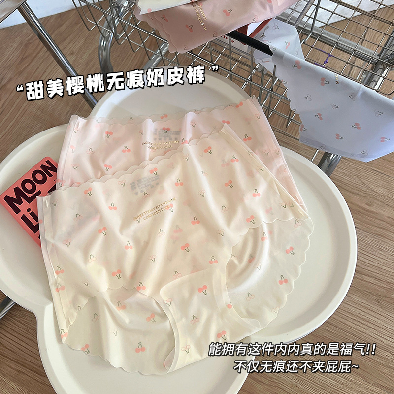 亿涵梦甜美樱桃无痕奶皮超薄印花蜜桃臀舒适亲肤少女纯棉裆内裤