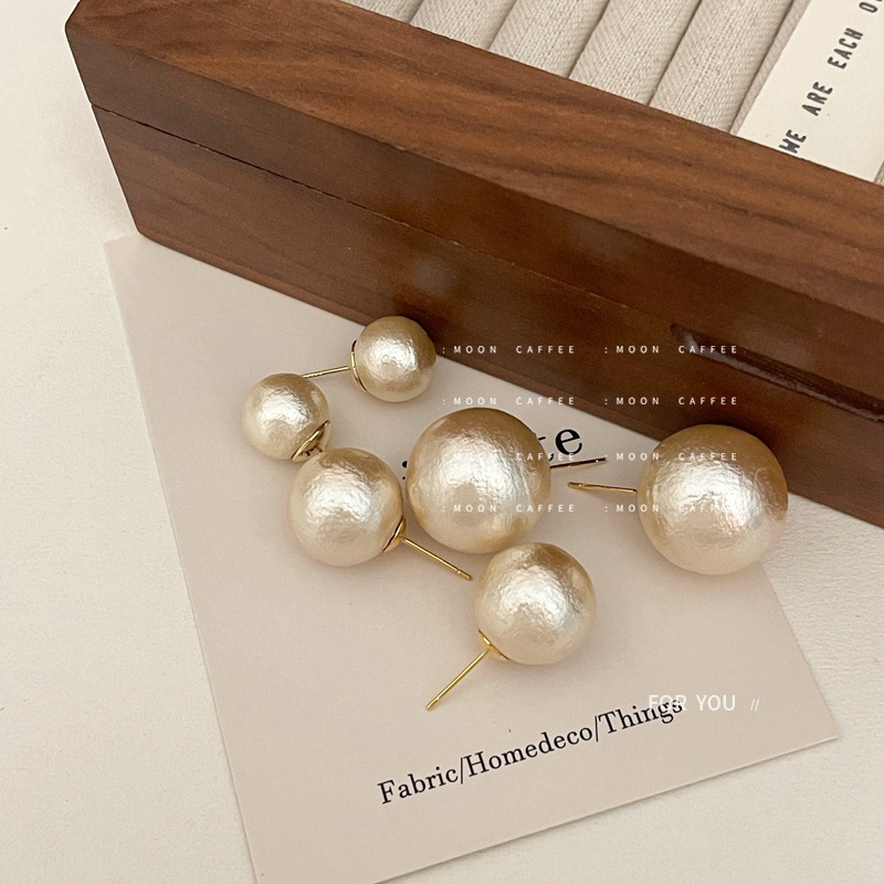 insMONA同款简约百搭925银针经典植物棉花珍珠耳钉女法式轻盈耳环