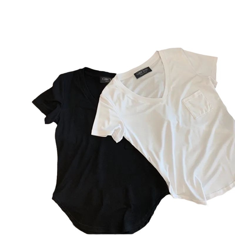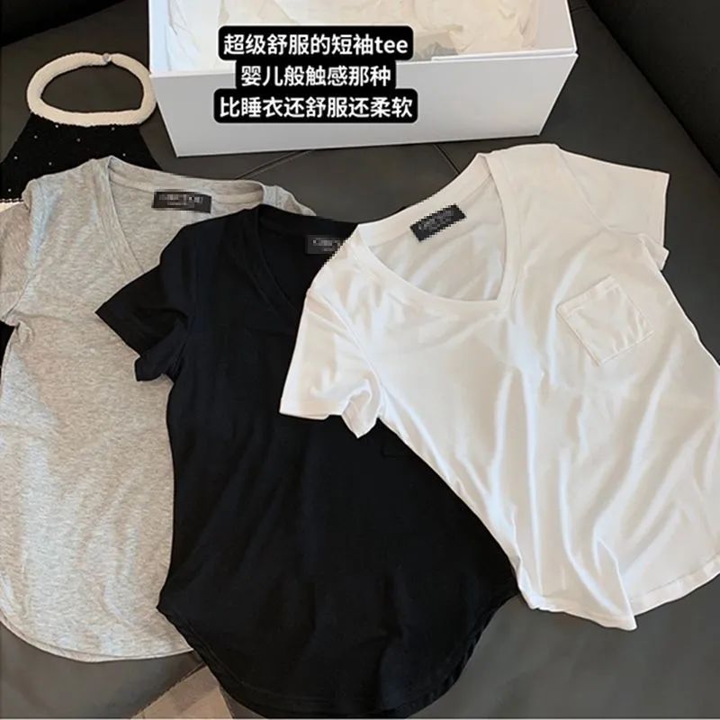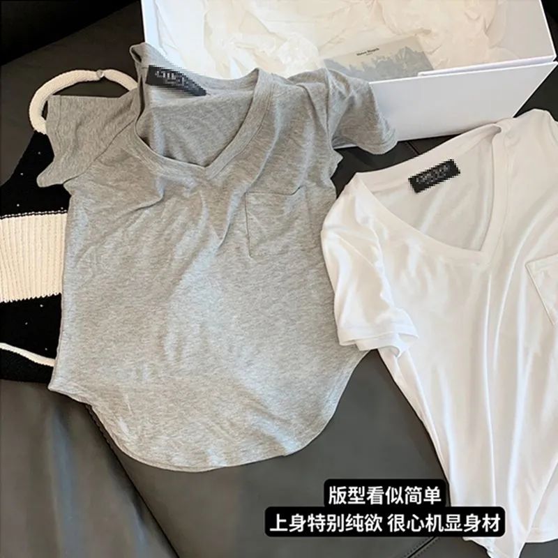 垂坠感锁骨短袖t恤女年夏季新款韩版宽松纯欲风V领上衣ins潮