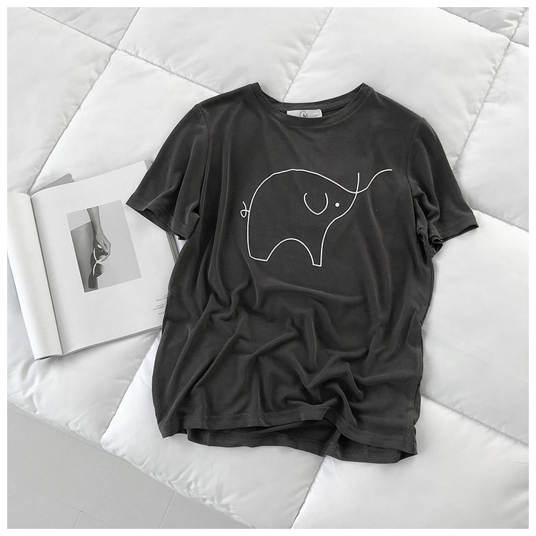 超手感莫代尔短袖t恤女夏季韩版宽松印花休闲百搭垂感显瘦上衣潮