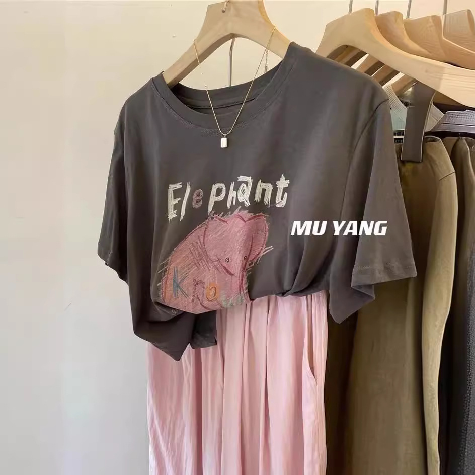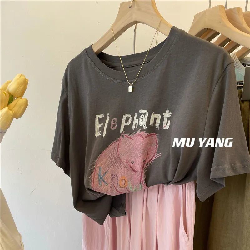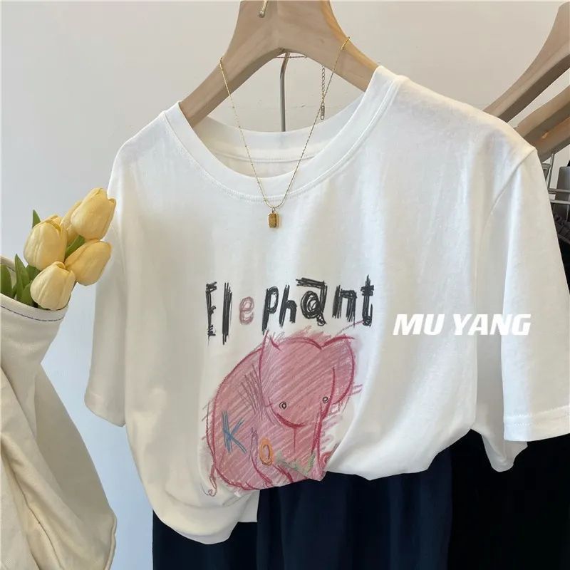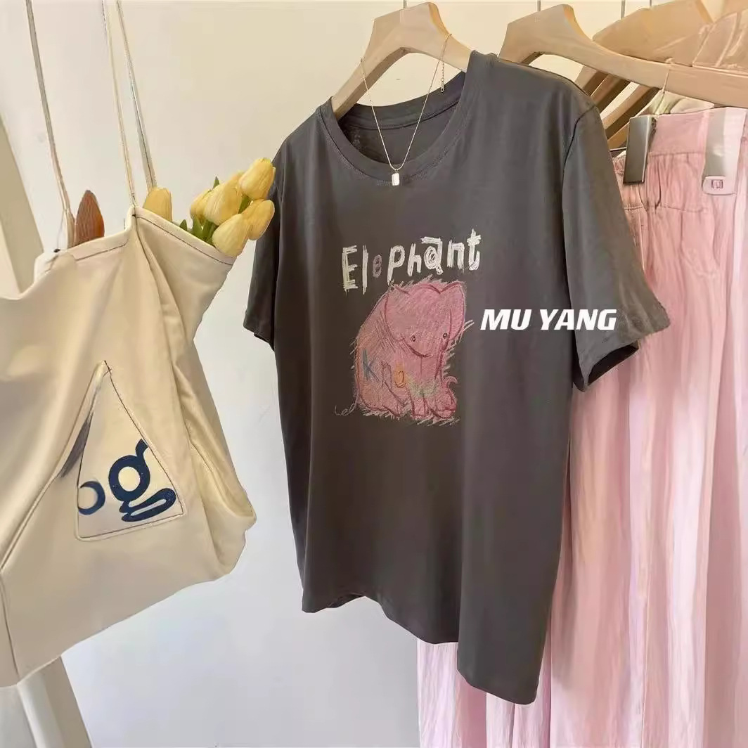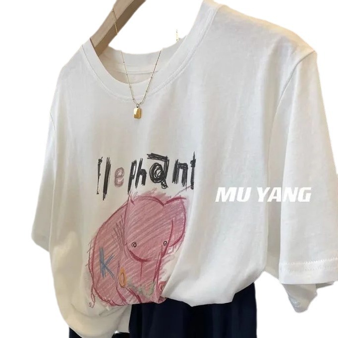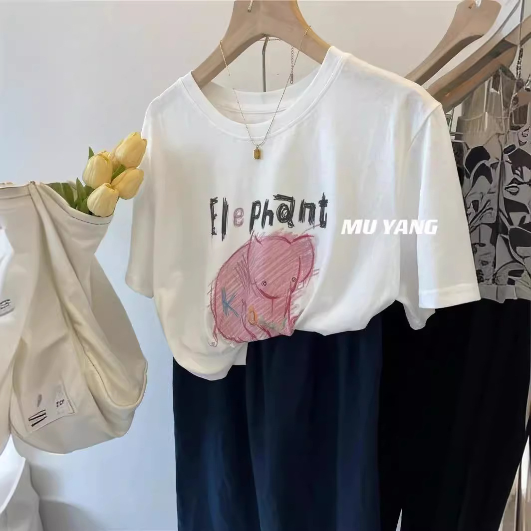 超手感莫代尔正肩短袖t恤女夏季设计感宽松休闲印花打底衫上衣潮