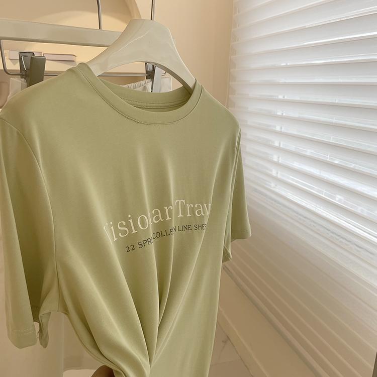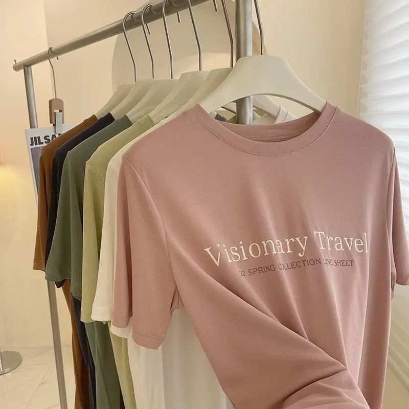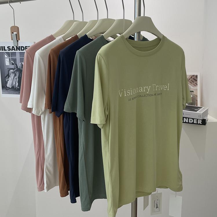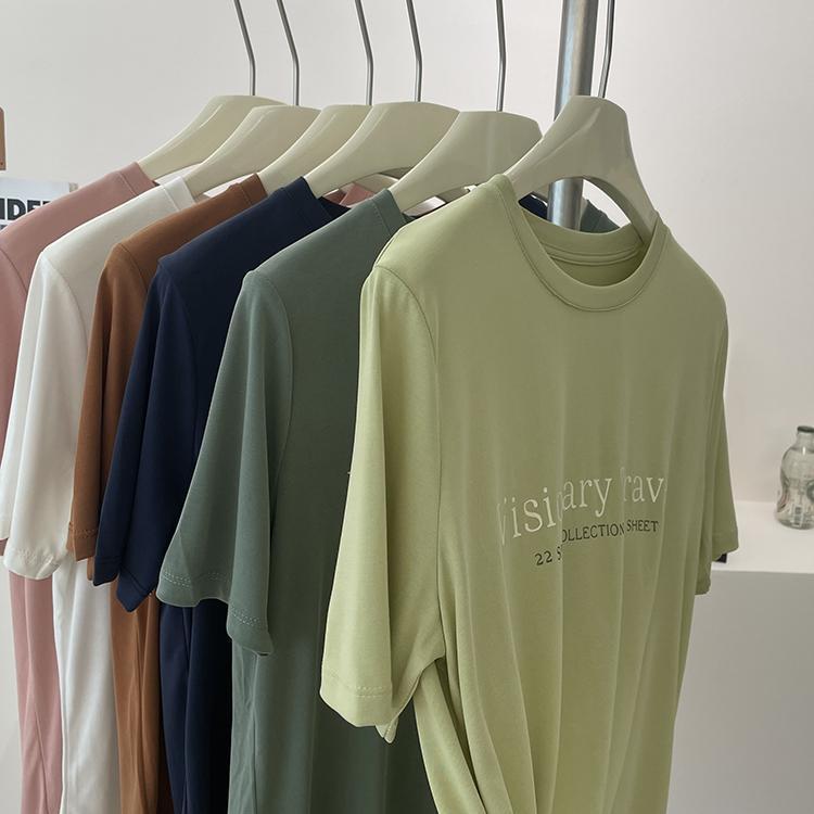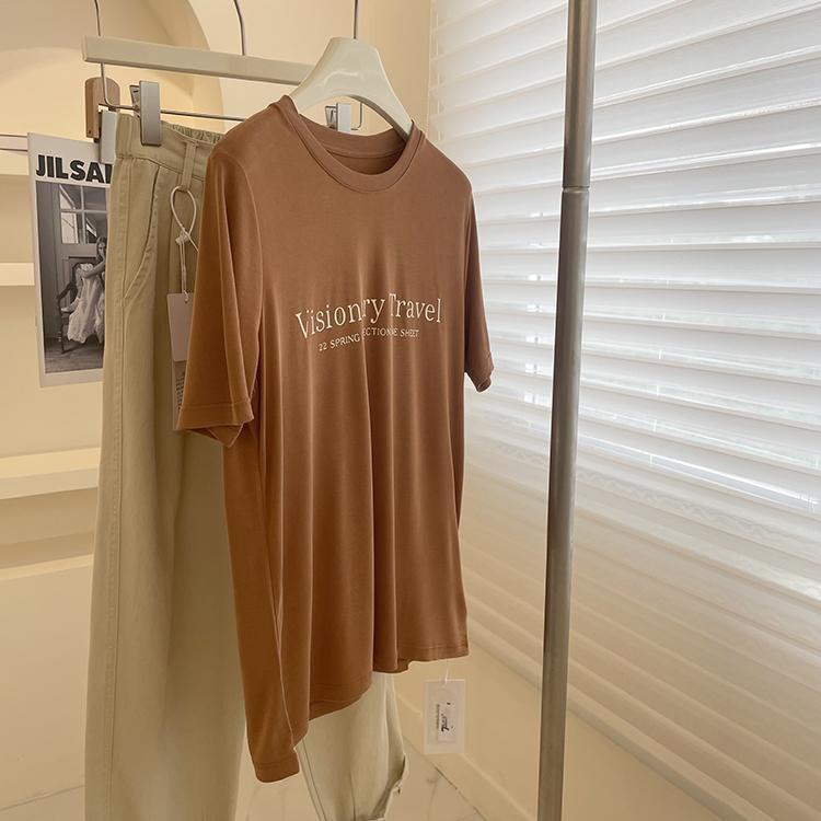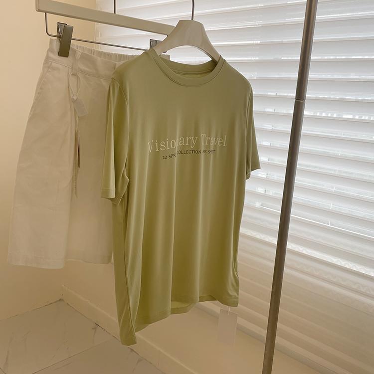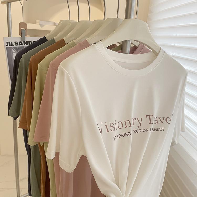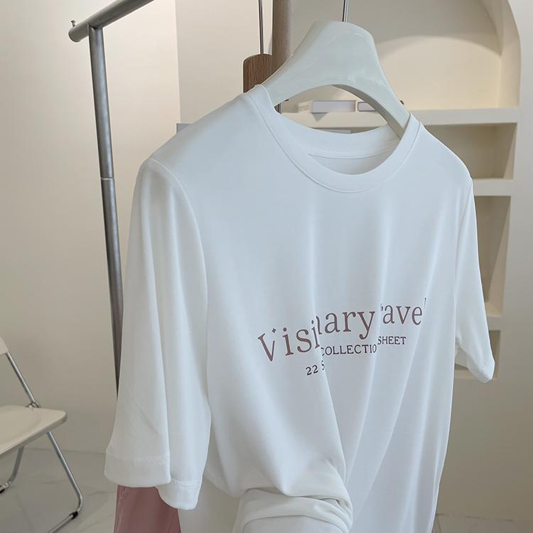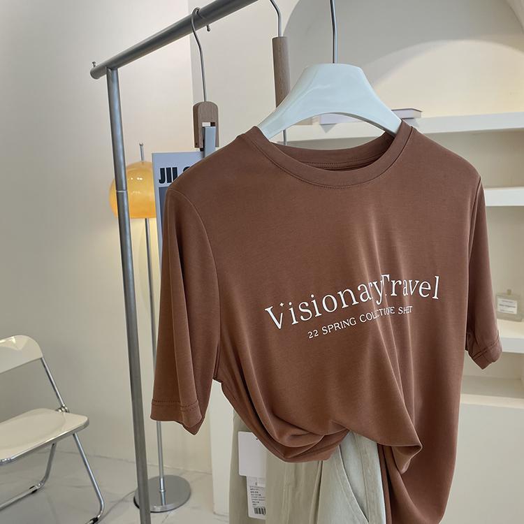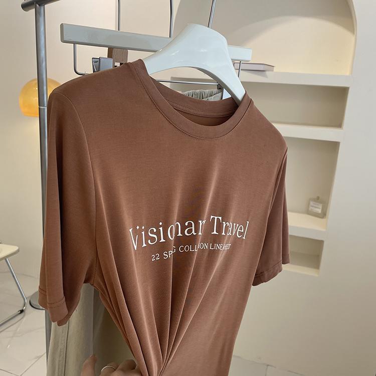 超手感莫代尔夏季新款垂软弹滑凉快字母印花圆领短袖T恤上衣女装