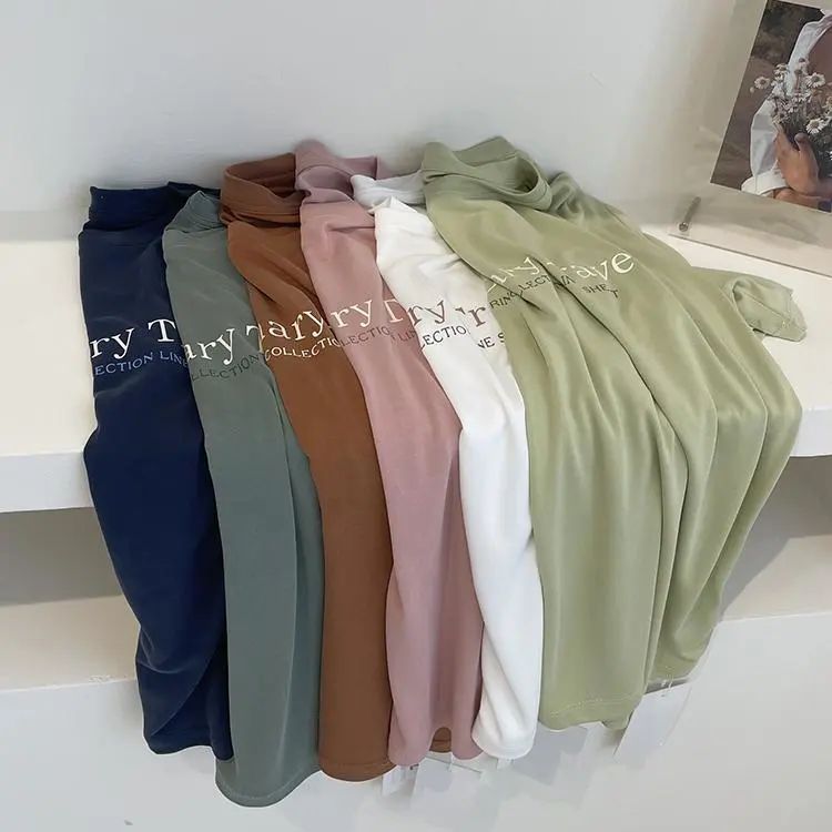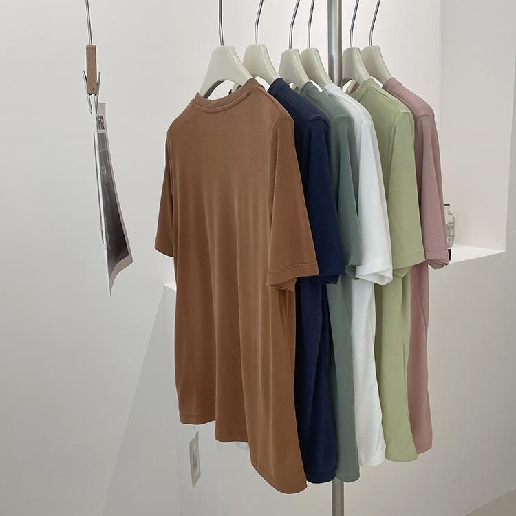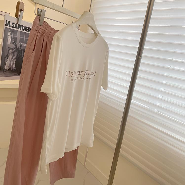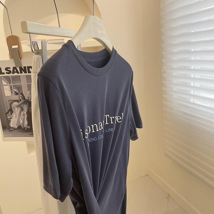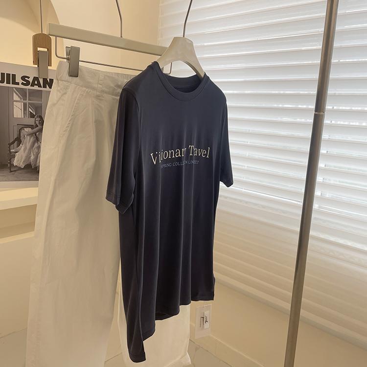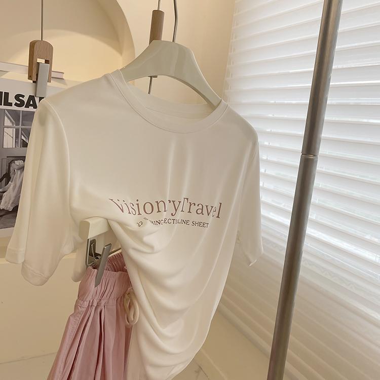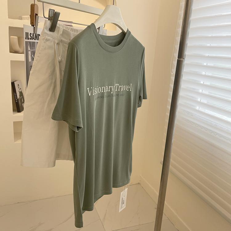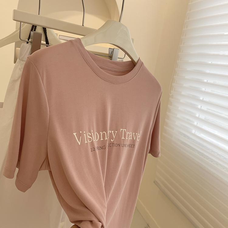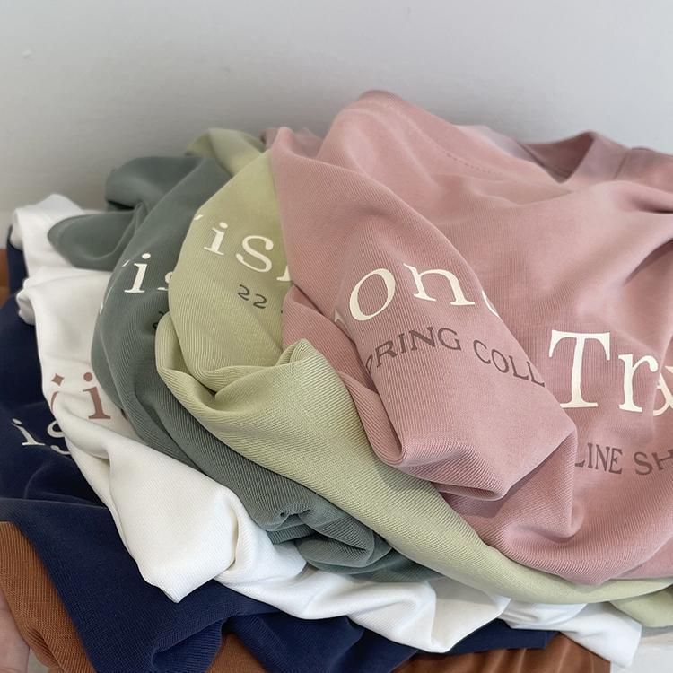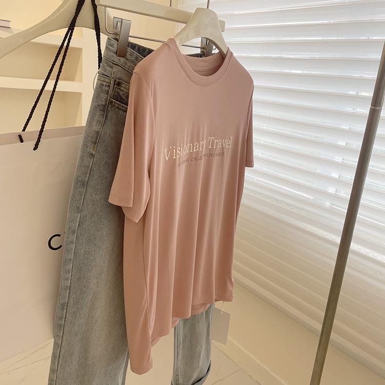 超手感莫代尔夏季新款垂软弹滑凉快字母印花圆领短袖T恤上衣女装