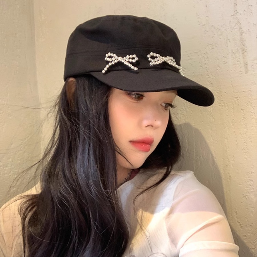 韩国小众蝴蝶结鸭舌帽女复古黑色显脸小ins春夏遮阳棒球帽大头围