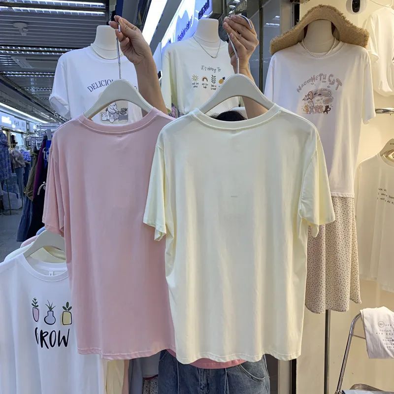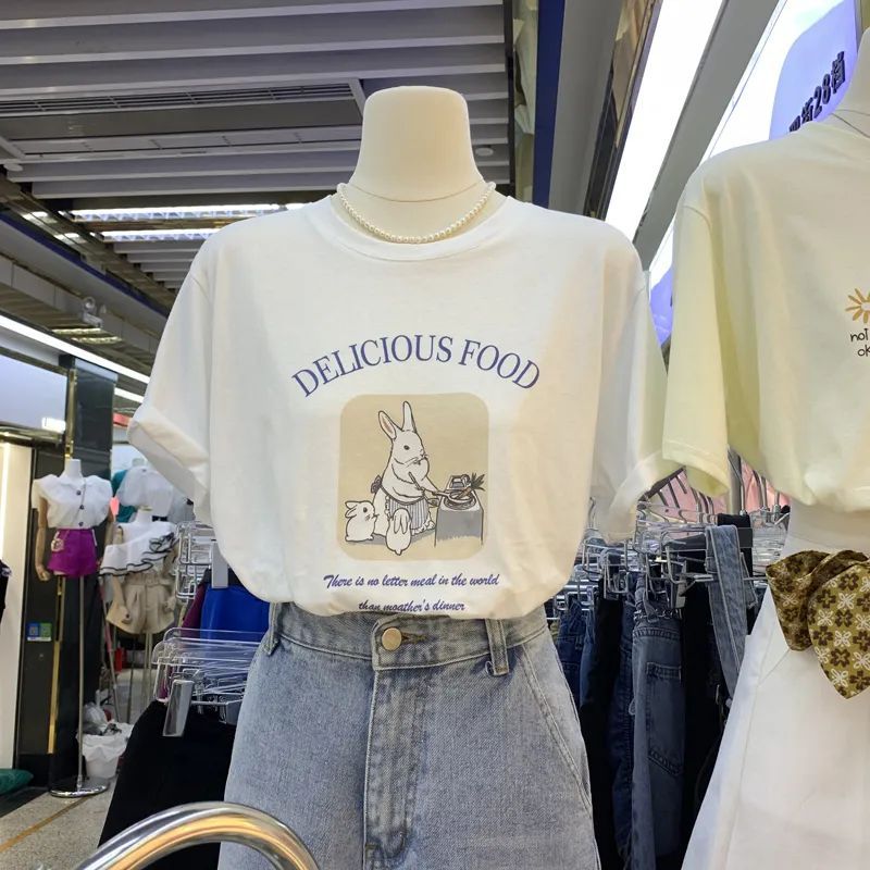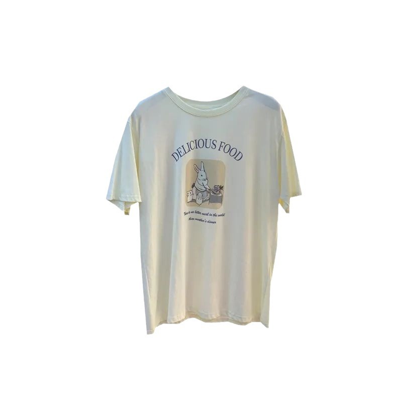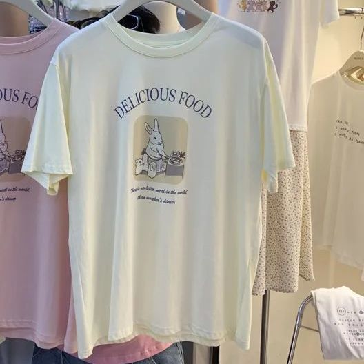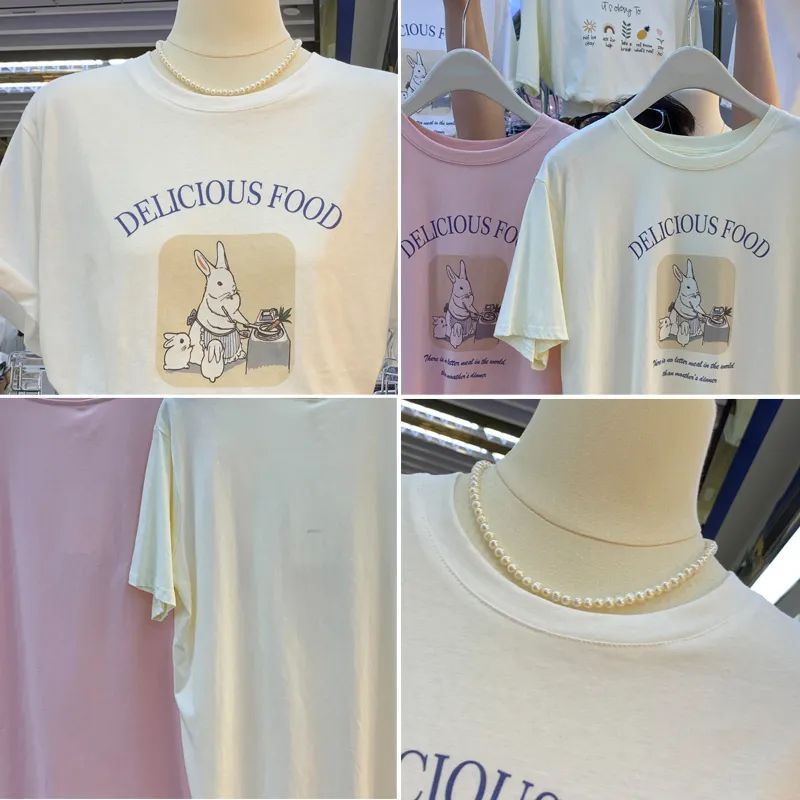 超手感莫代尔韩版小兔甜美宽松百搭卡通印花休闲短袖t恤女