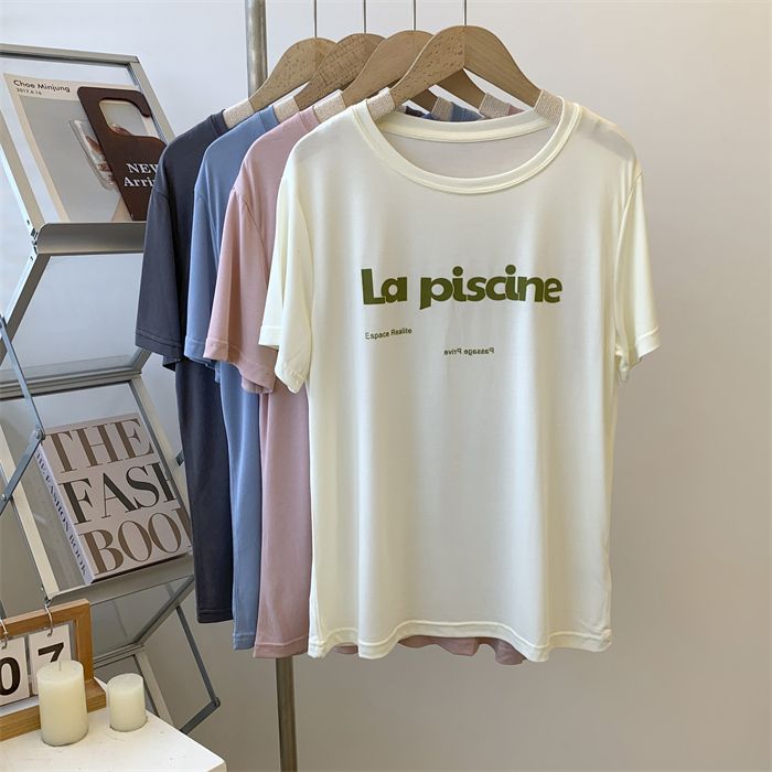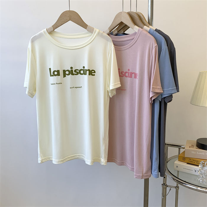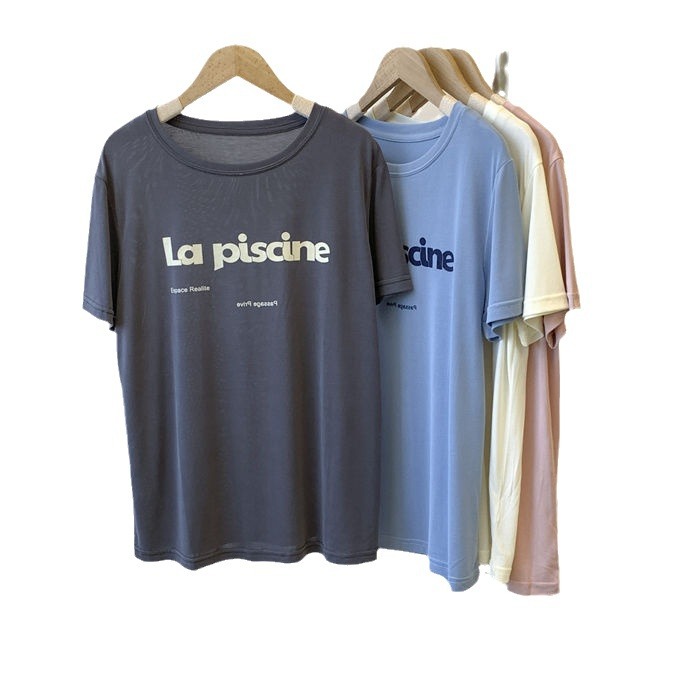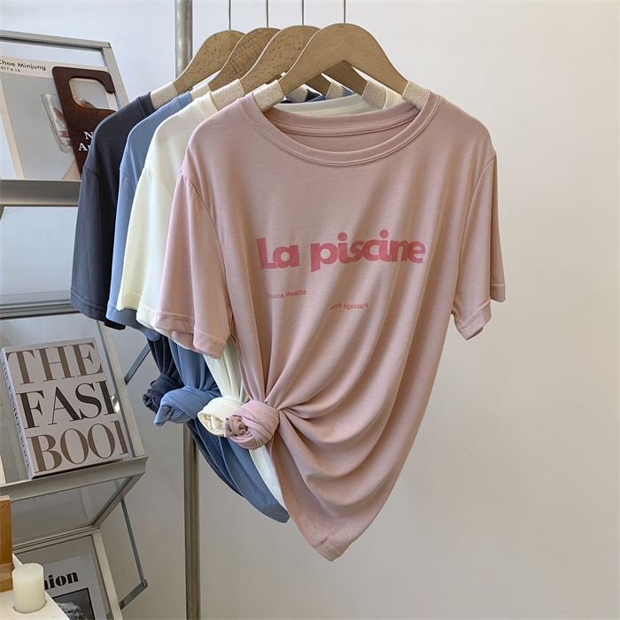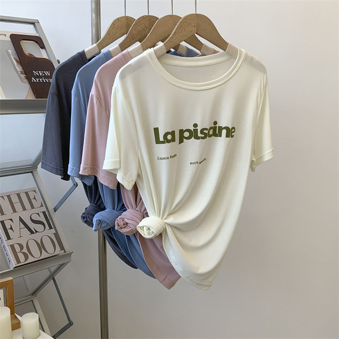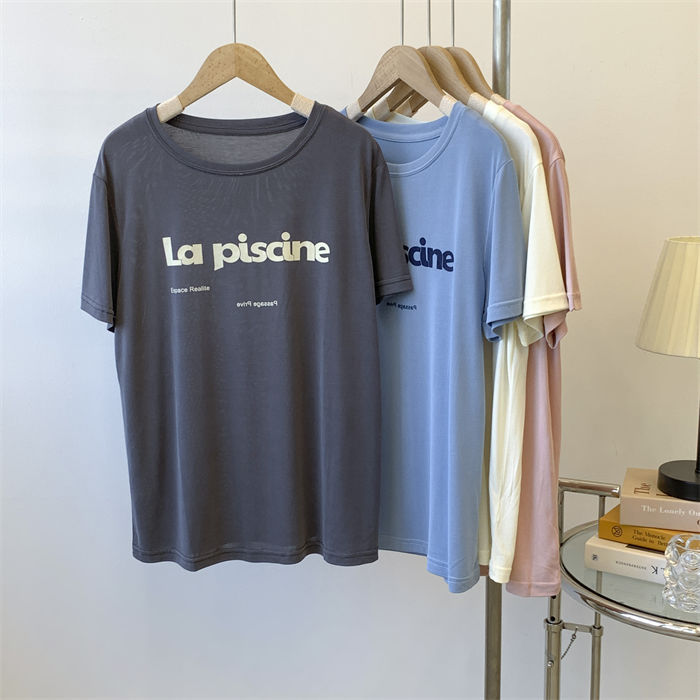 超手感莫代尔美式复古恤!夏轻薄款字母印花圆领休闲上衣短袖女潮