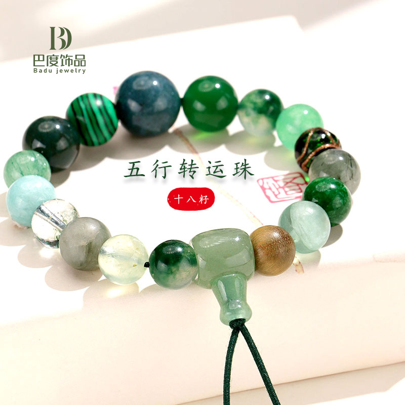巴度新品十八籽多宝五行转运水晶手链小众高级感葡萄石手串