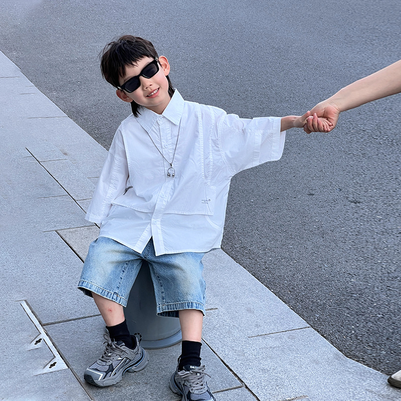 男童夏装儿童短袖衬衫宝宝宽松白色上衣夏季新款男孩纯棉衬衣