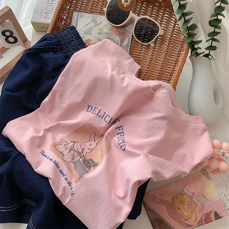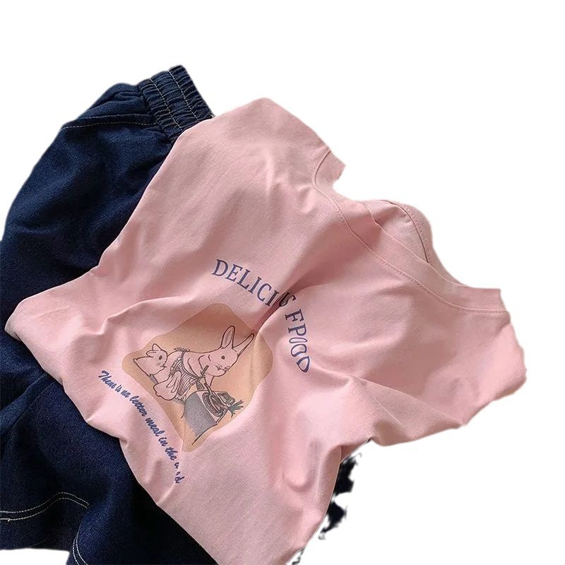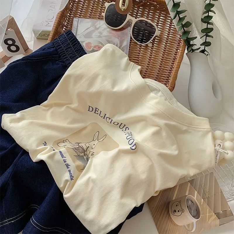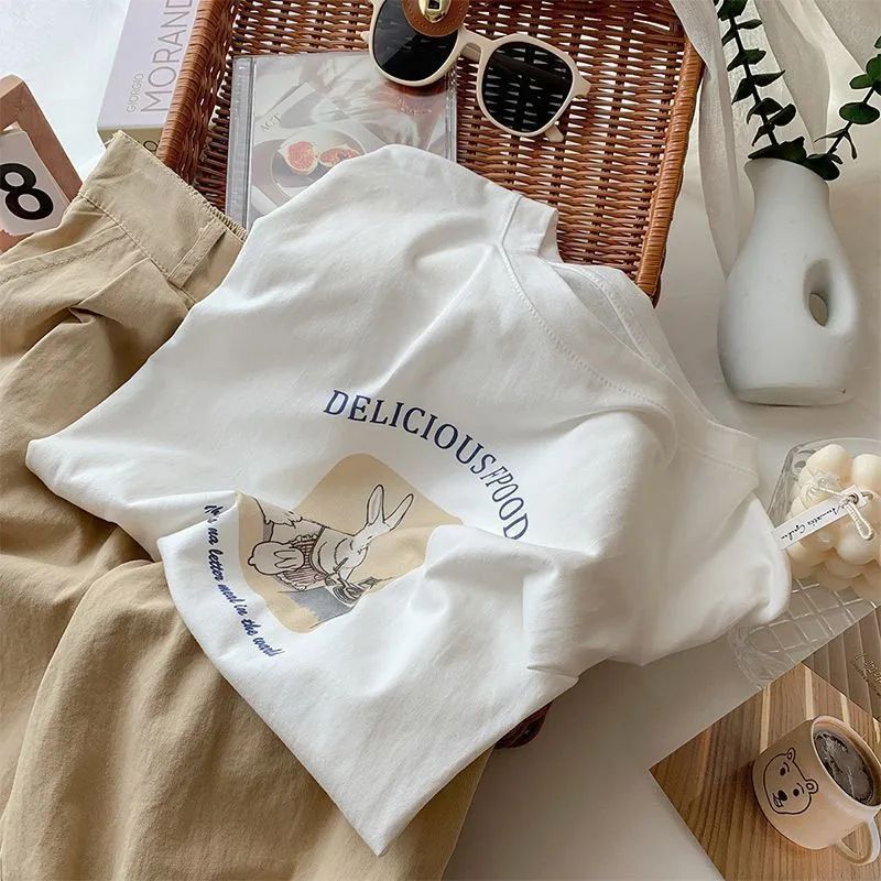 莫代尔白色围裙兔子短袖t恤女纯欲风夏季新款圆领百搭打底衫