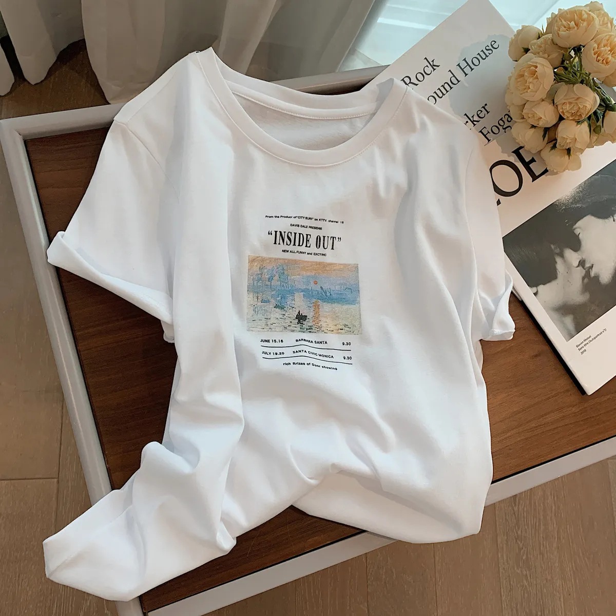 超手感莫代尔白色字母印花短袖t恤女夏新款韩版宽松百搭体恤上衣