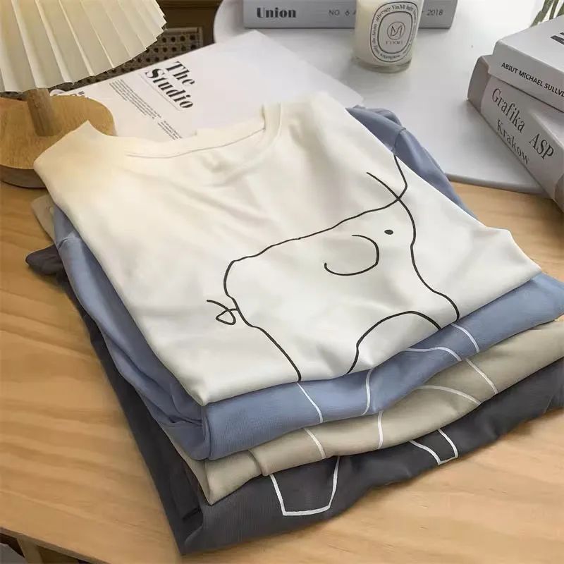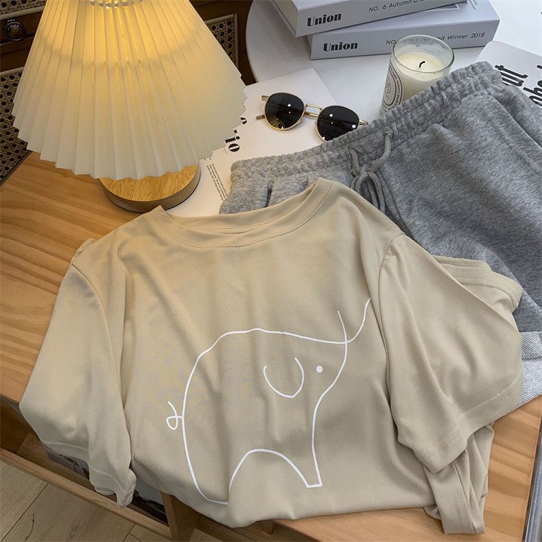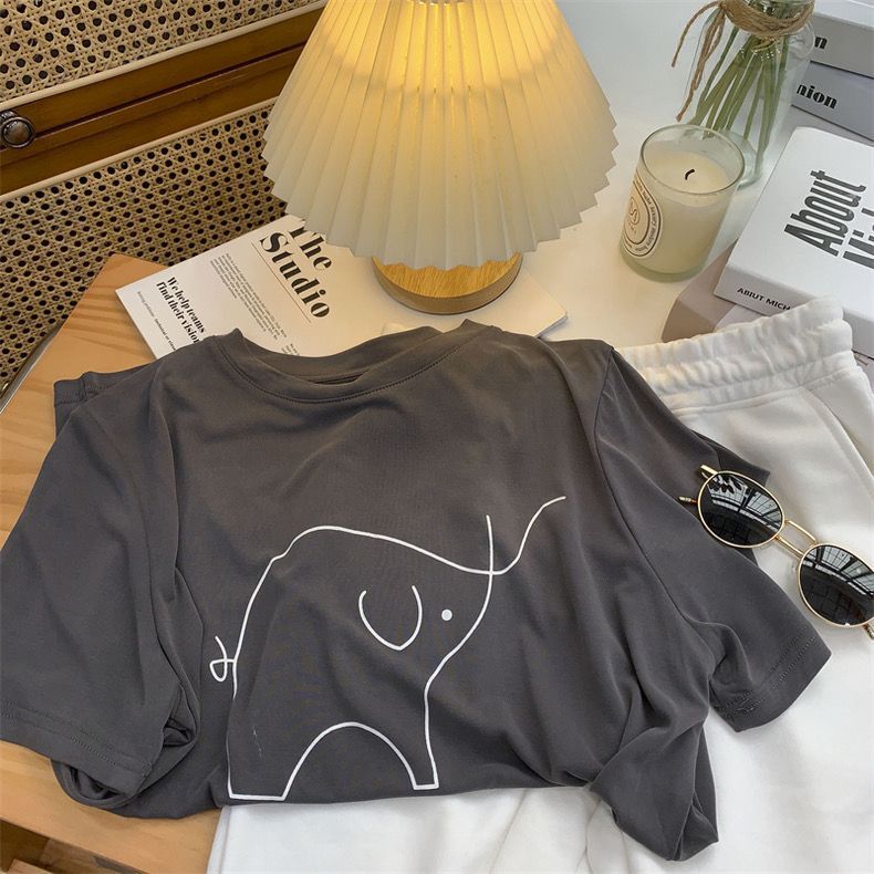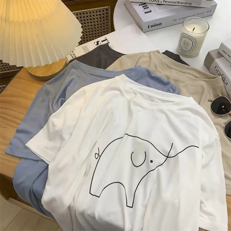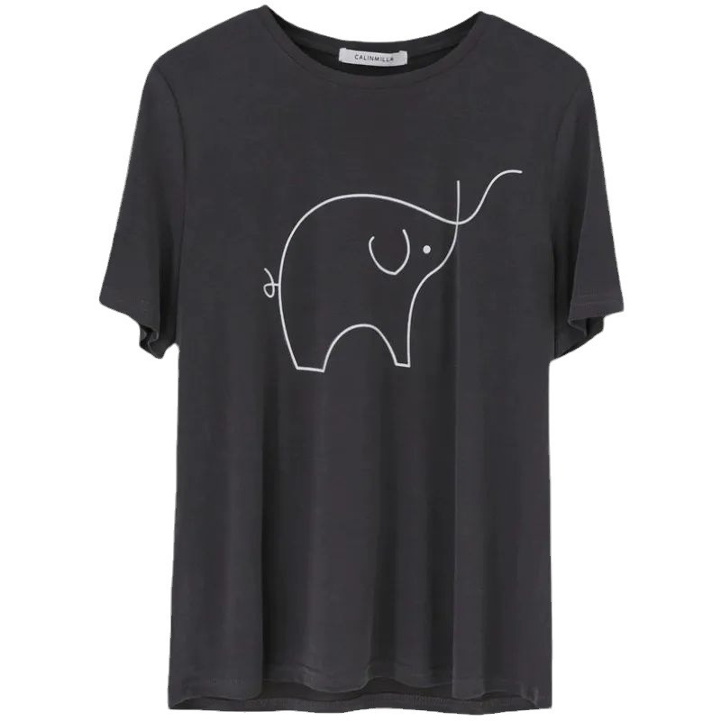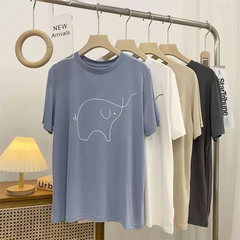 超手感莫代尔t恤女夏季韩版宽松印花休闲百搭垂感显瘦短袖上衣潮