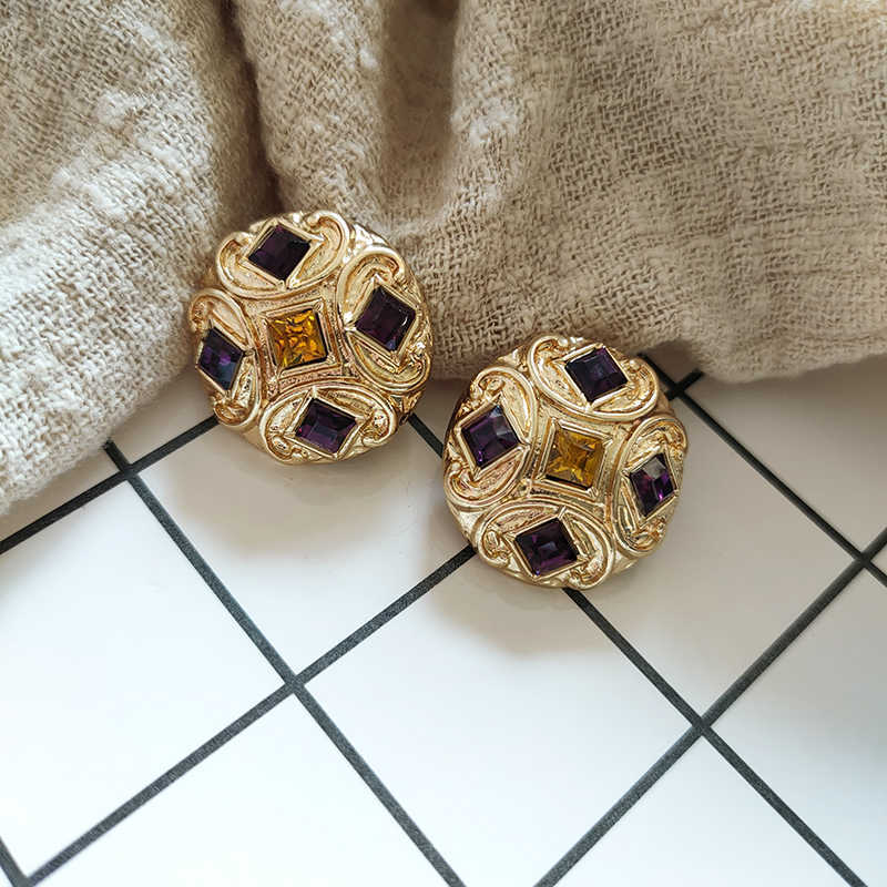 中式复古Vintage耳饰巴洛克风格紫色琉璃圆形耳钉气质百搭993