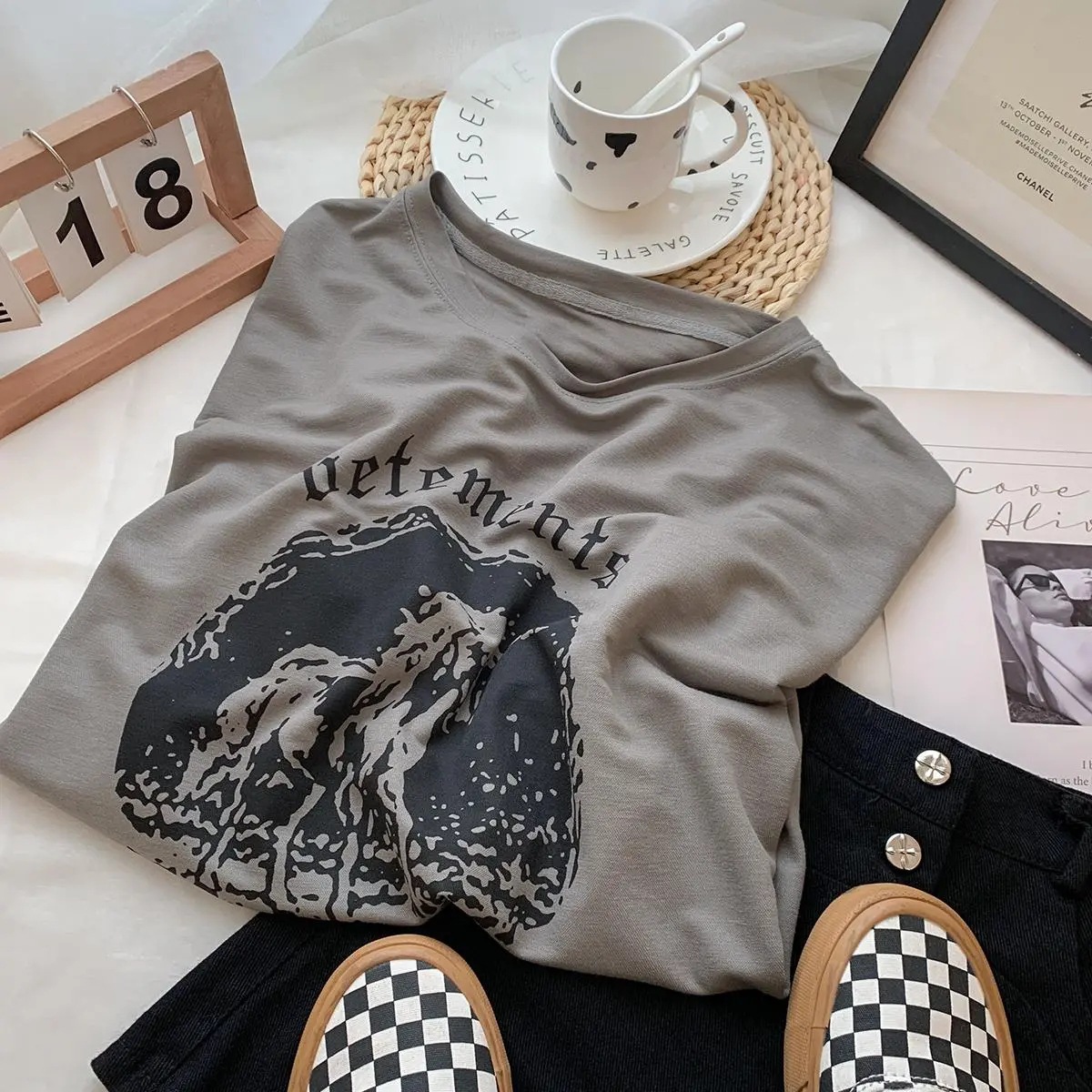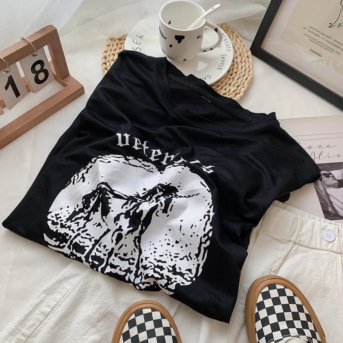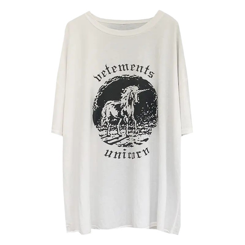 莫代尔美式半袖独角兽印花短袖T恤女夏季宽松慵懒下衣失踪上衣潮