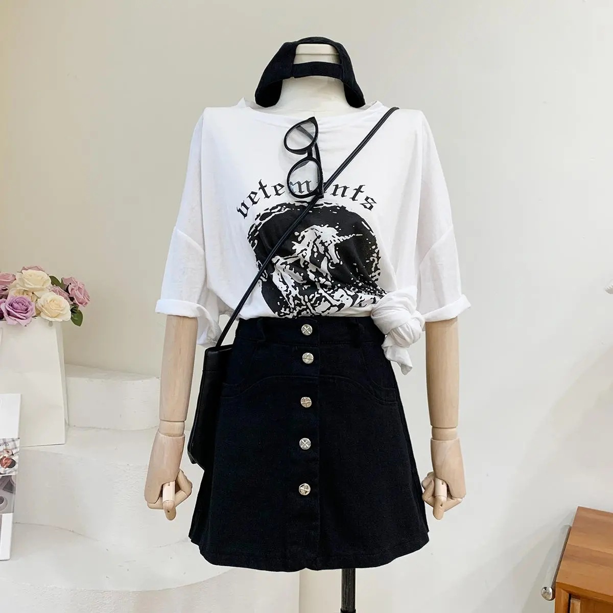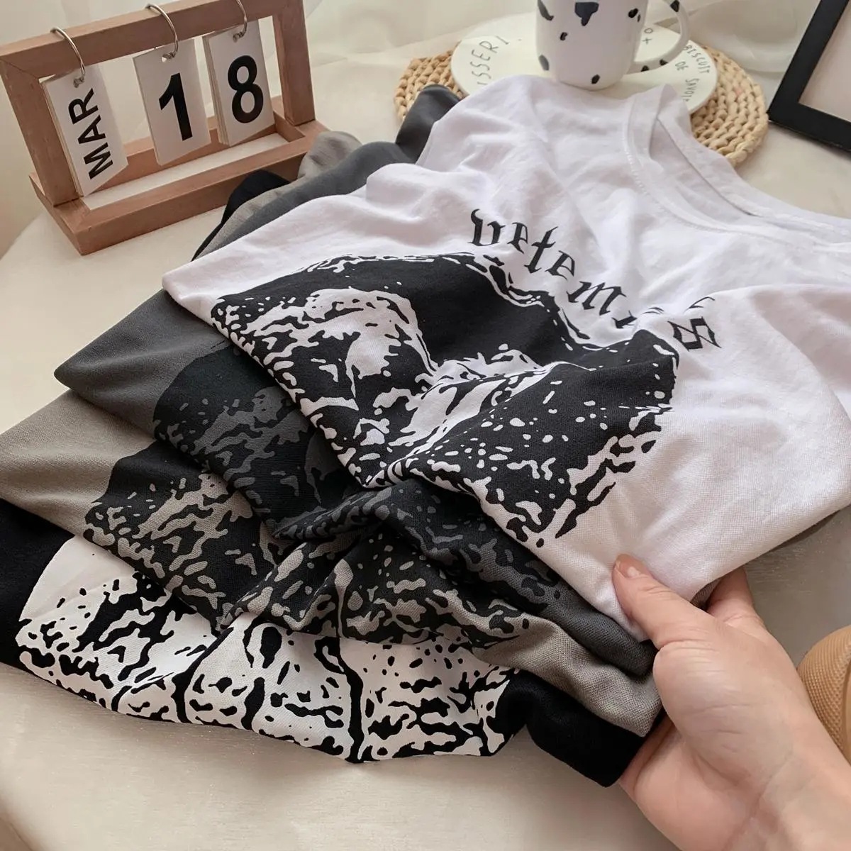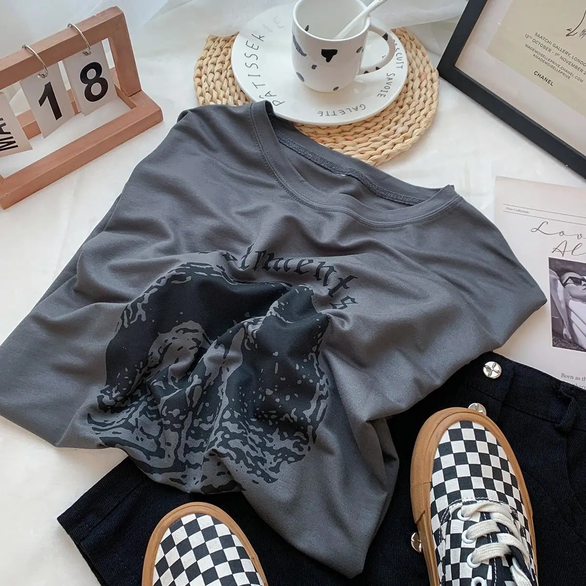 莫代尔美式半袖独角兽印花短袖T恤女夏季宽松慵懒下衣失踪上衣潮