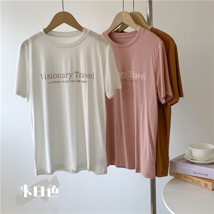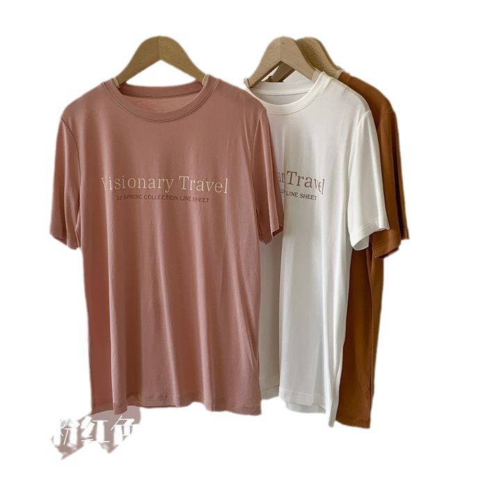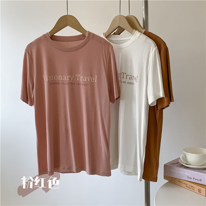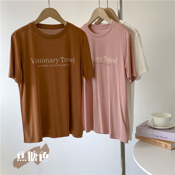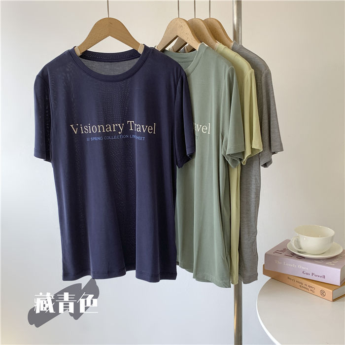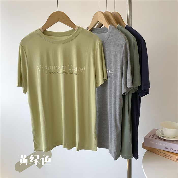 莫代尔字母印花短袖T恤女夏季薄款垂坠感软糯面膜上衣打底练功服