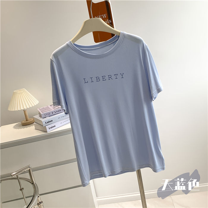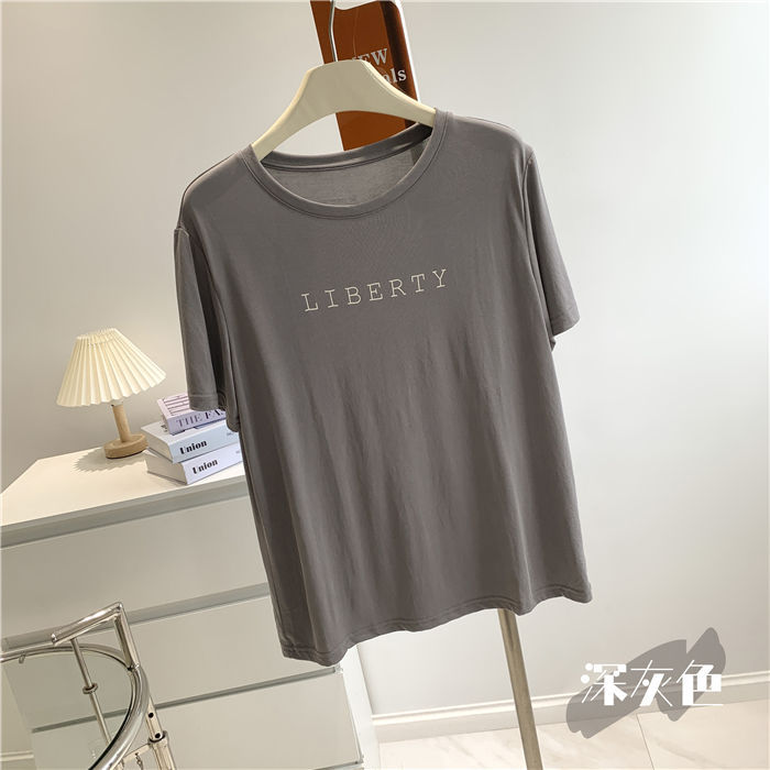 莫代尔字母印花垂感短袖t恤女!夏季韩版新款宽松学生百搭上衣潮