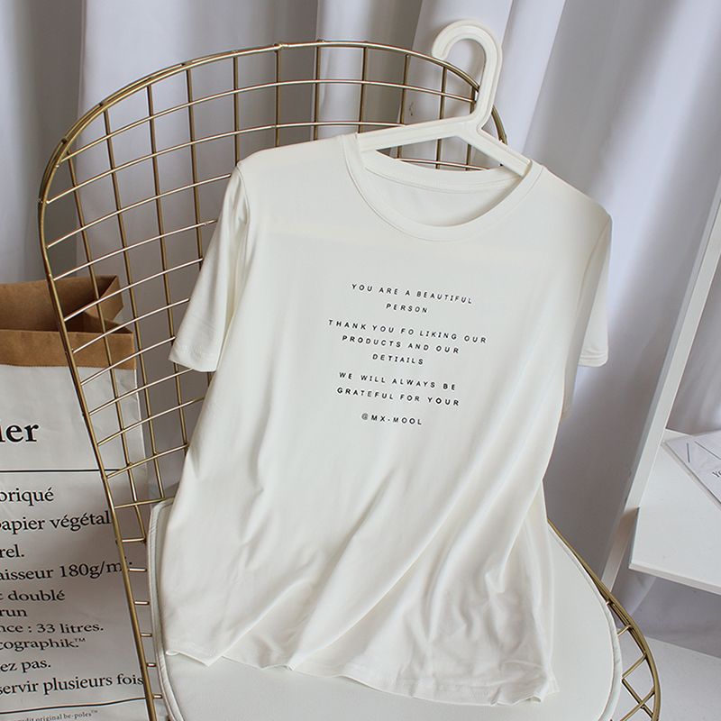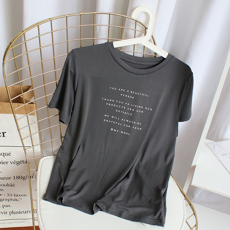 超手感莫代尔短袖T恤女夏季韩版新款宽松印花显瘦百搭字母上衣潮