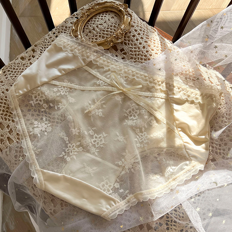 爆款法式缎面蕾丝内裤女小心机包臀桑蚕丝裆中腰女士内裤