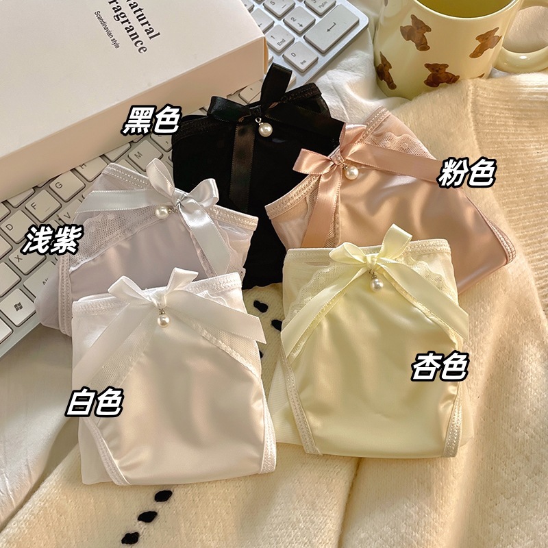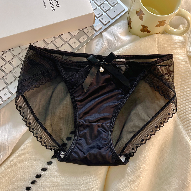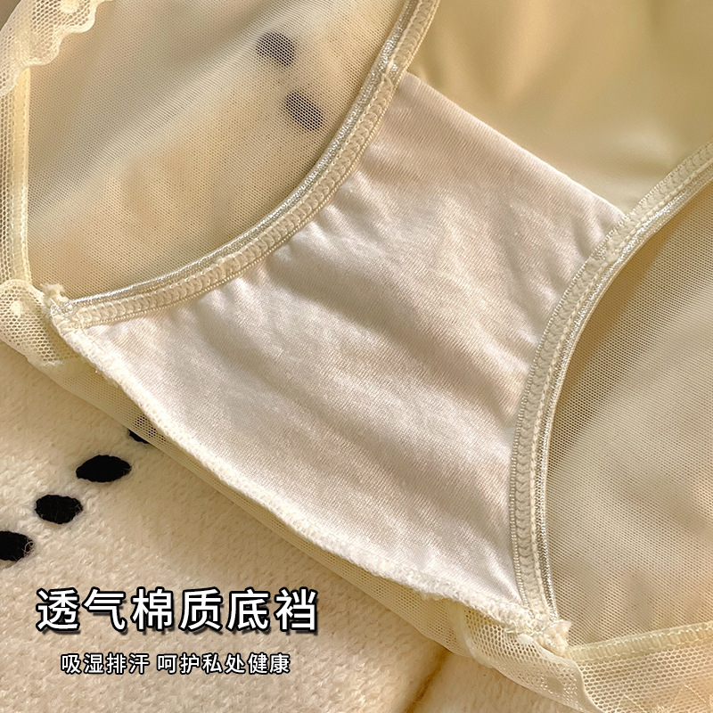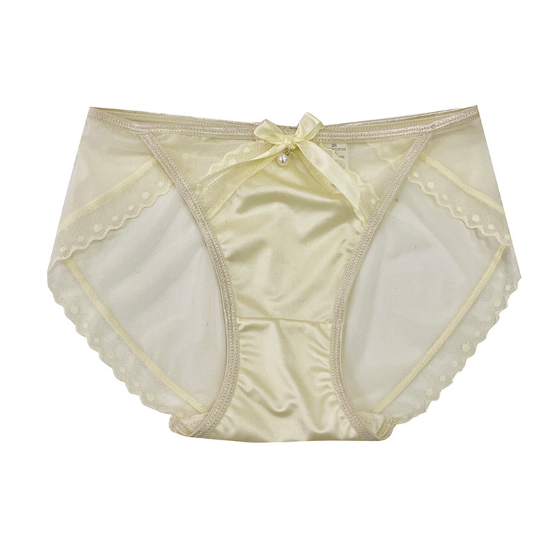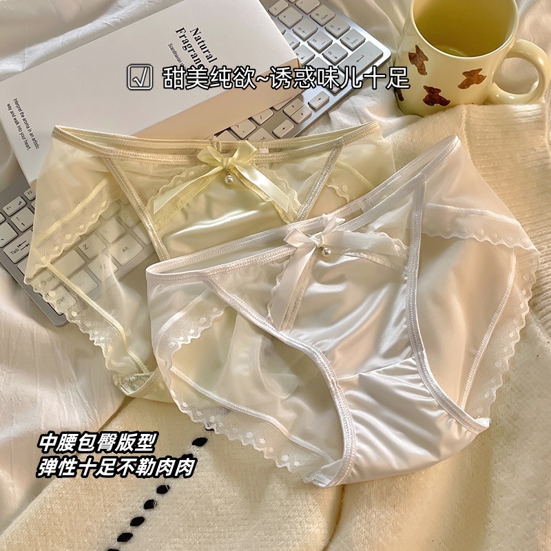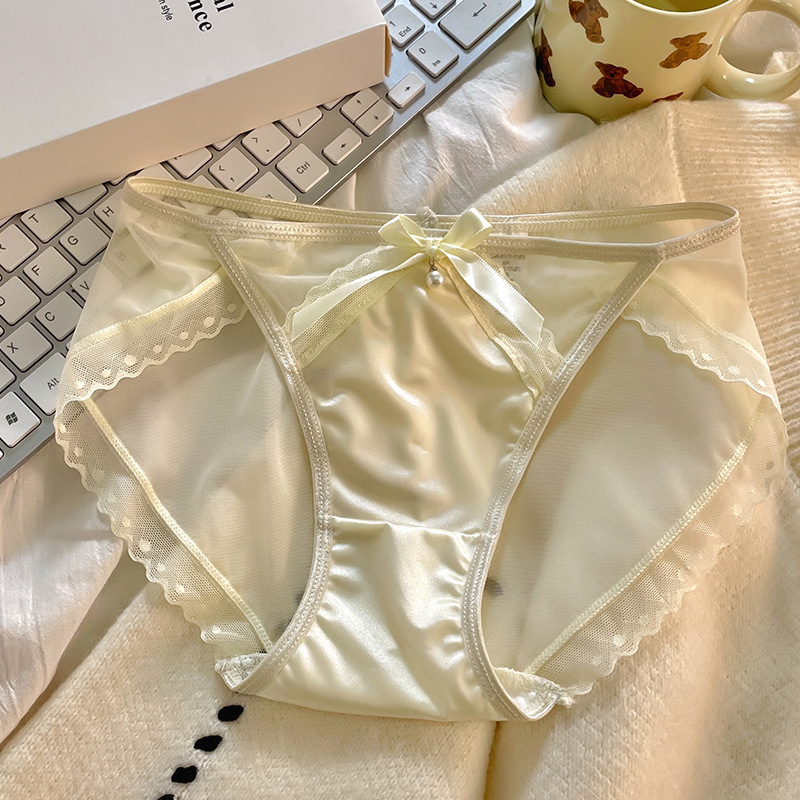 日系甜美缎面少女内裤中腰全棉裆部蕾丝花边透气网纱性感三角裤女