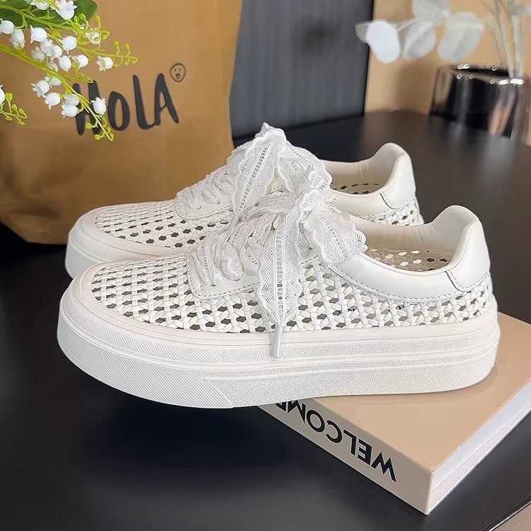 手工编织厚底小白鞋女2025夏季新款薄款镂空透气休闲百搭运动板鞋