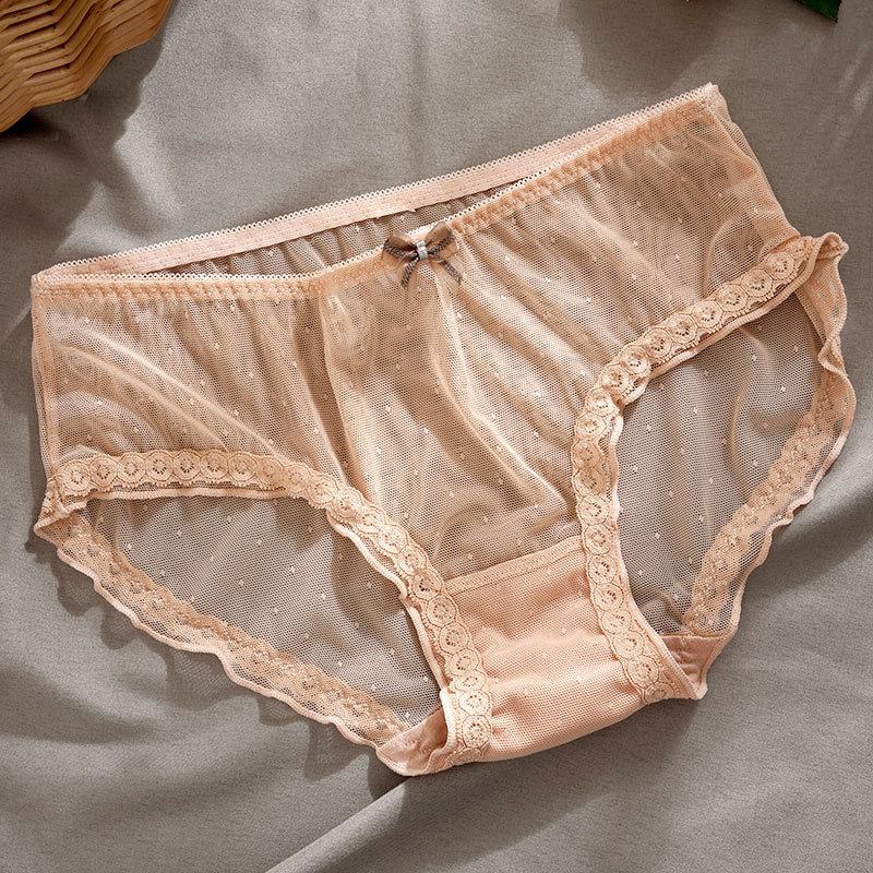 新款无痕性感波点蕾丝女士内裤诱惑包臀半透明情调内裤女纯棉底裆