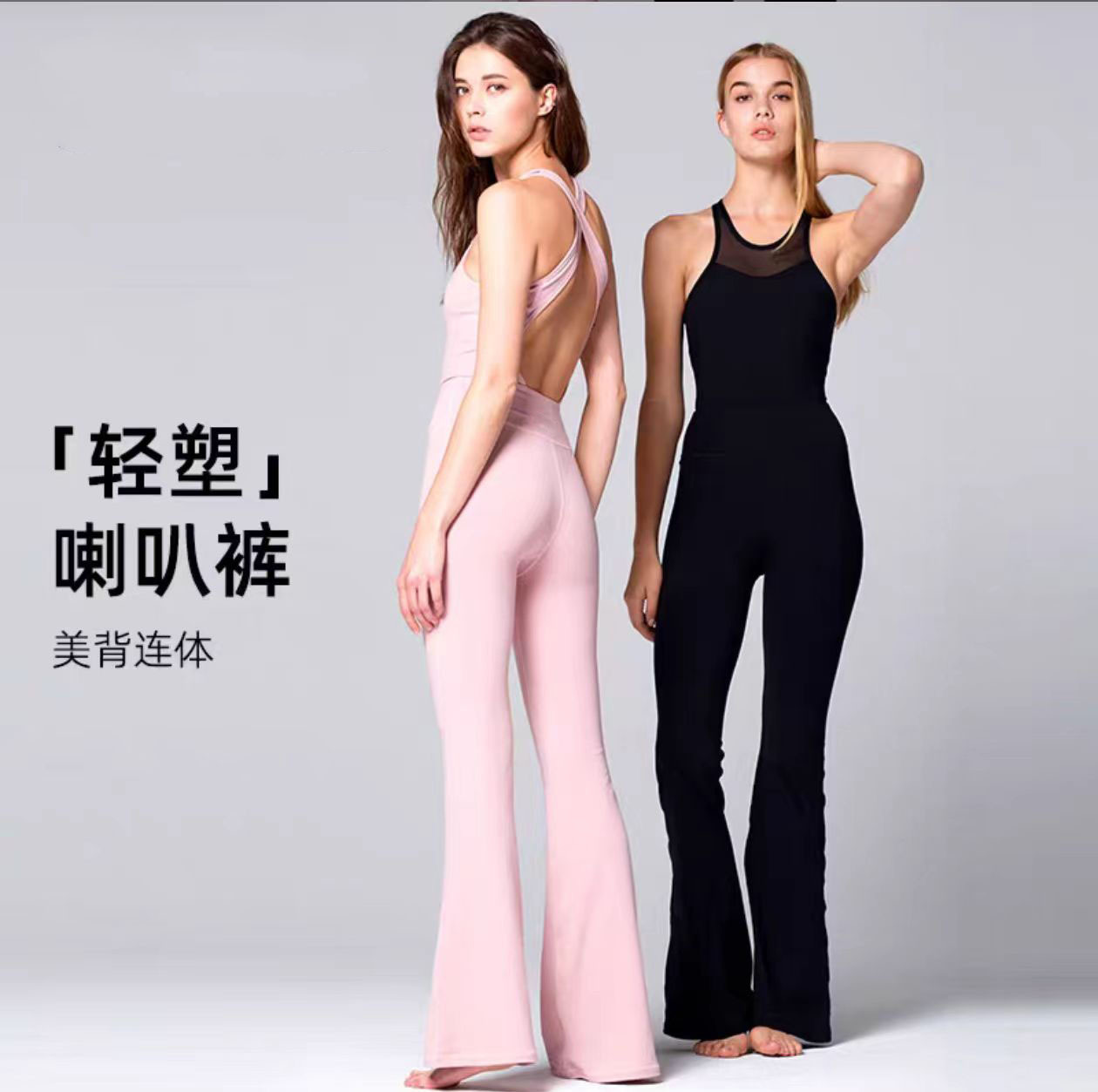 欧美运动瑜伽连体服女美背拼色连体衣裸感运动健身显瘦阔腿喇叭裤