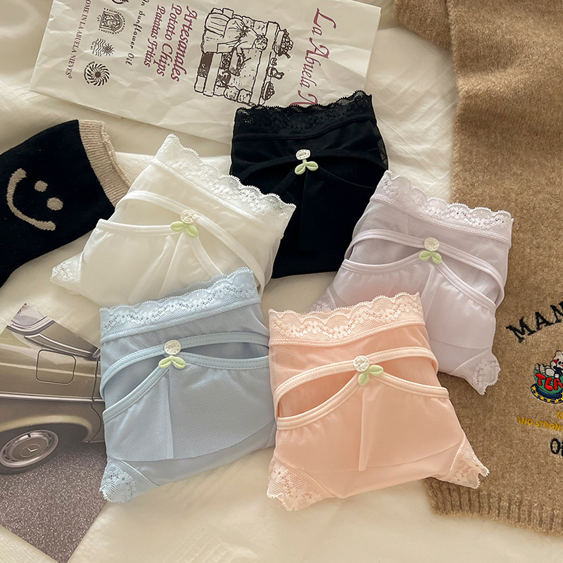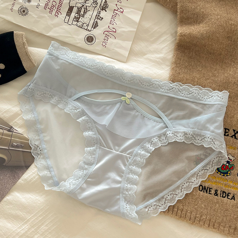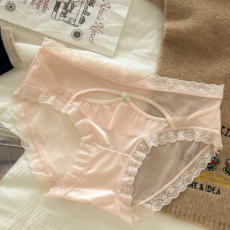 ins微醺粉黛~欧美蕾丝内裤女生性感透气桑蚕丝内裆中腰三角裤新款