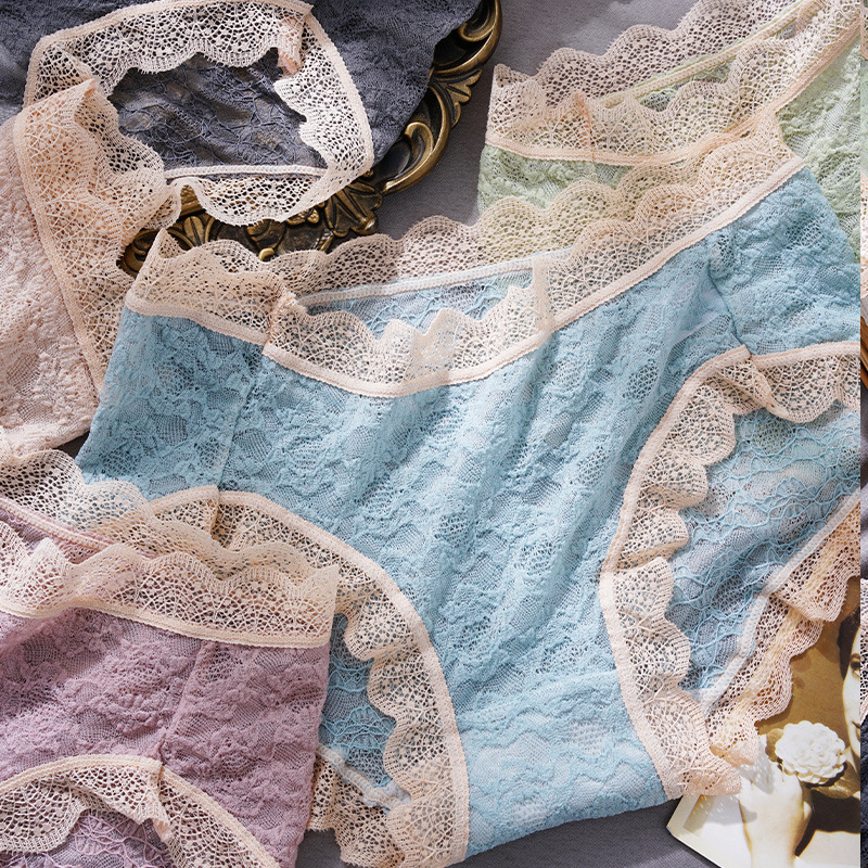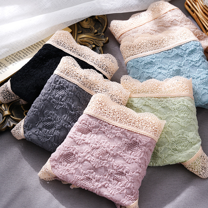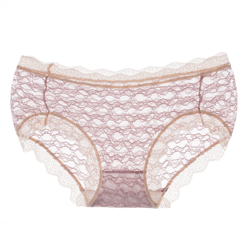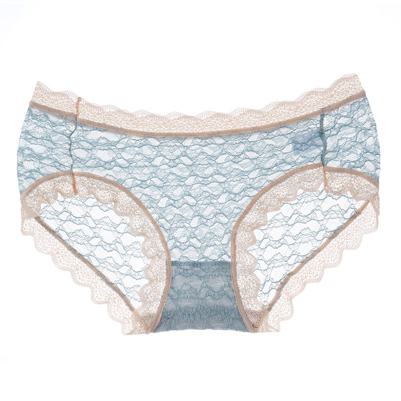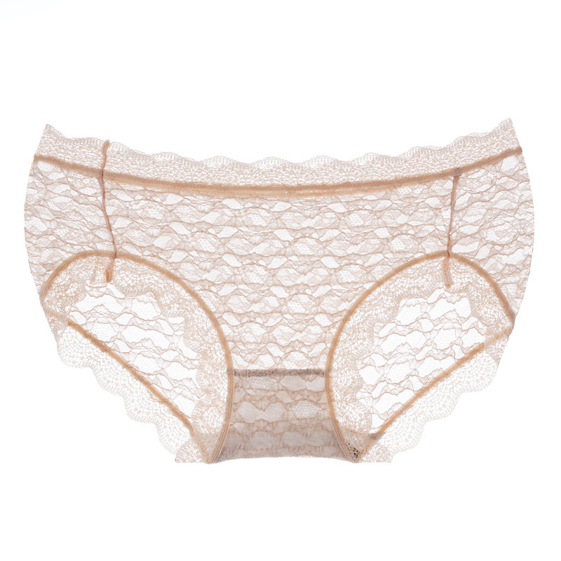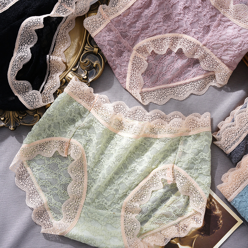 日系无痕抗菌性感蕾丝女士内裤透明镂空火辣中腰情调三角内裤少女