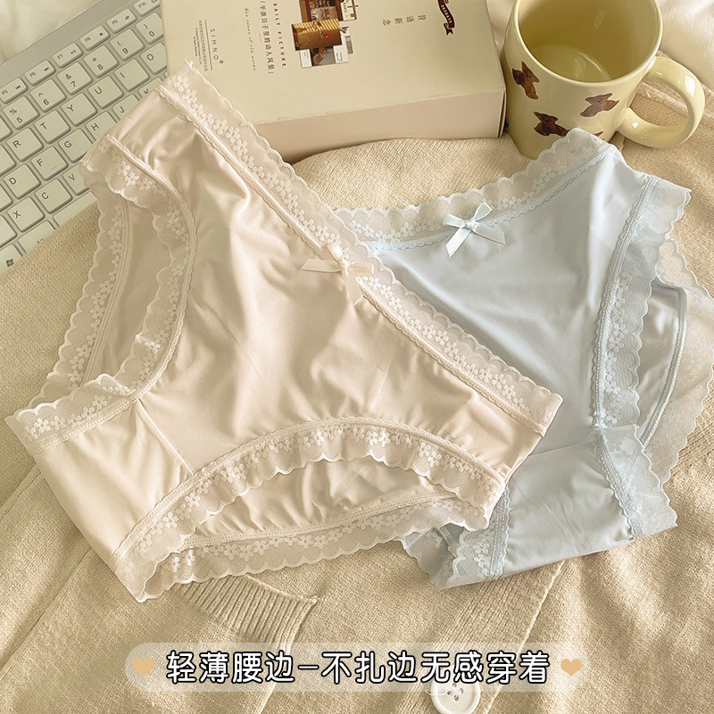 日系奶油少女冰丝内裤纯欲性感中腰透气速干纯棉档裸感三角裤