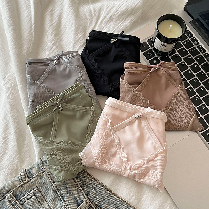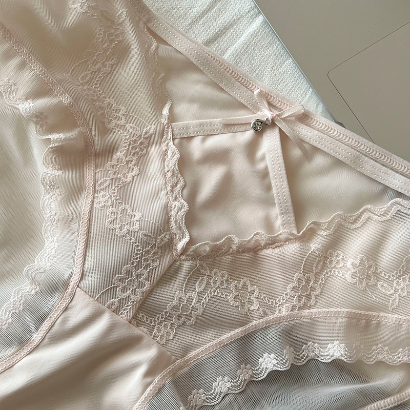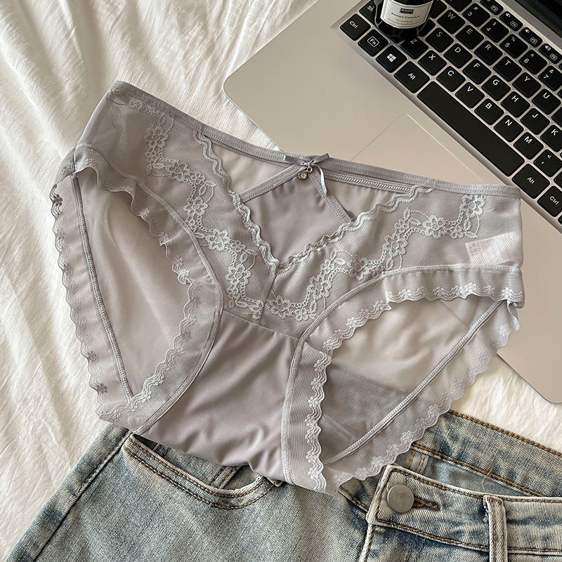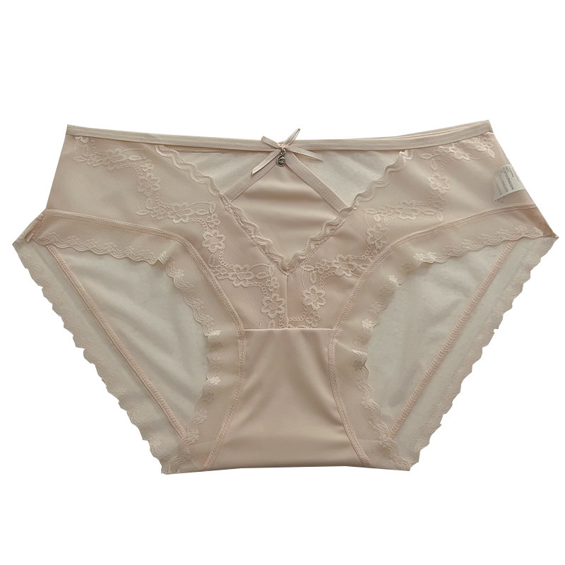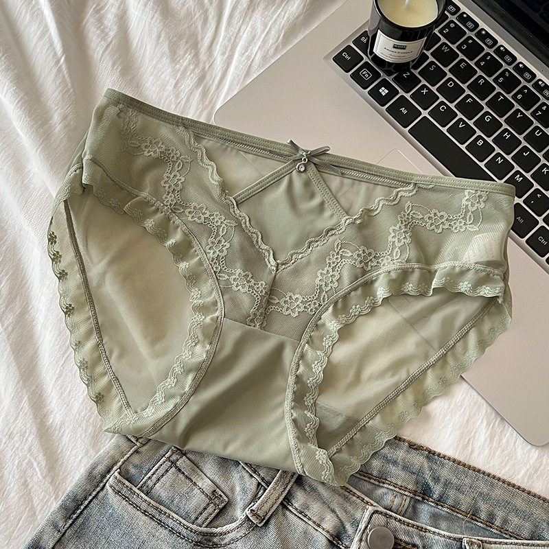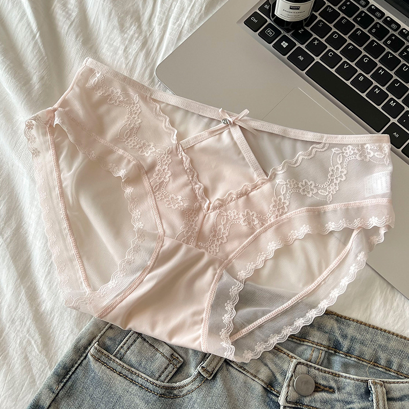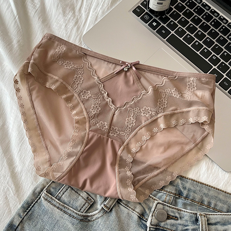 新款欧式性感蕾丝半透明镂空女士内裤桑蚕丝裆三角裤中腰