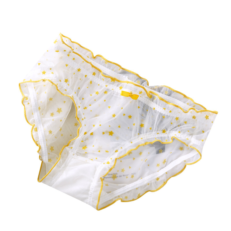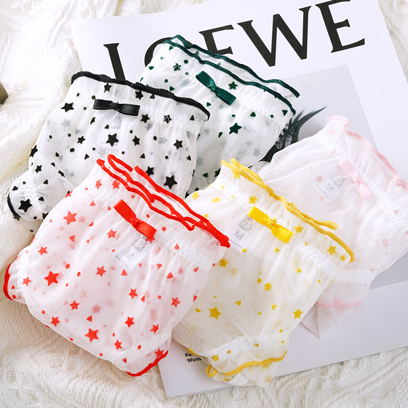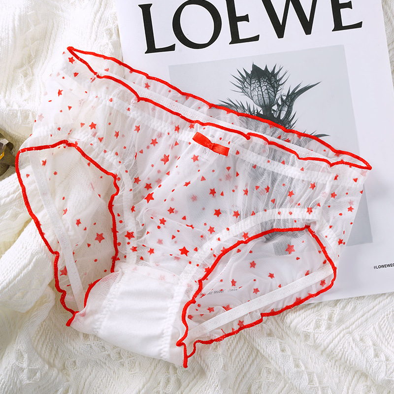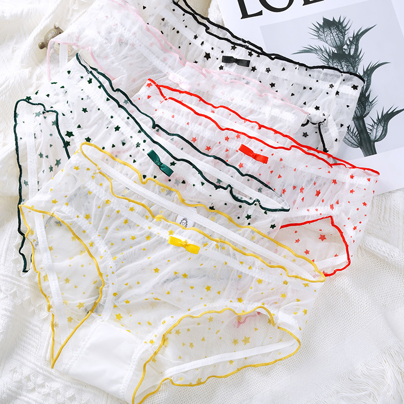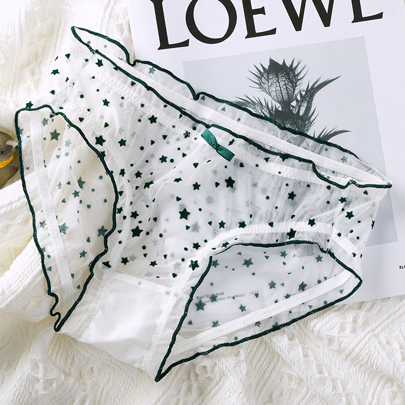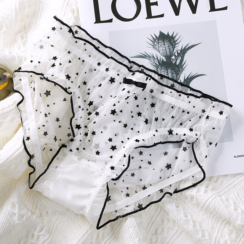 新款实绒星星网点蕾丝性感无痕女士内裤中腰纯欲风少女清新内裤女