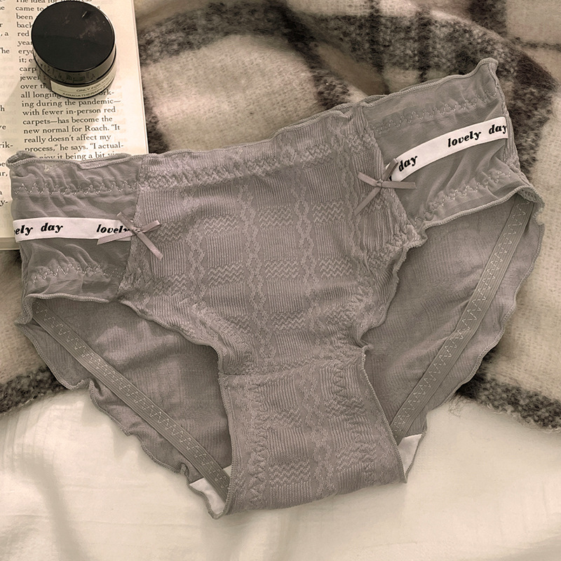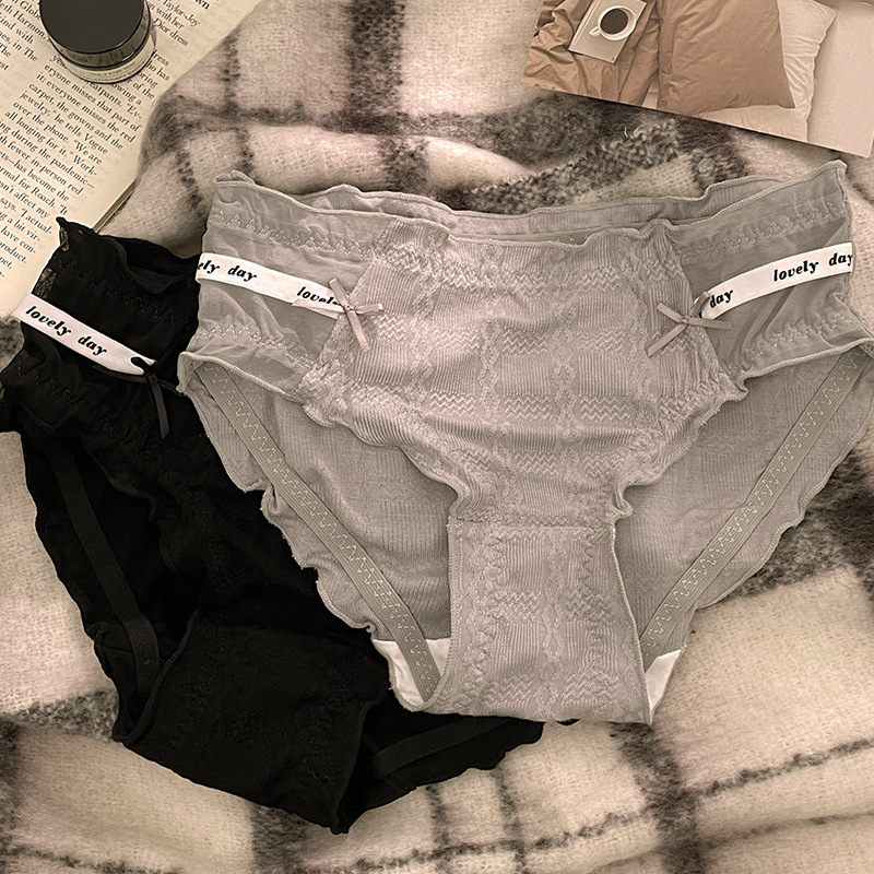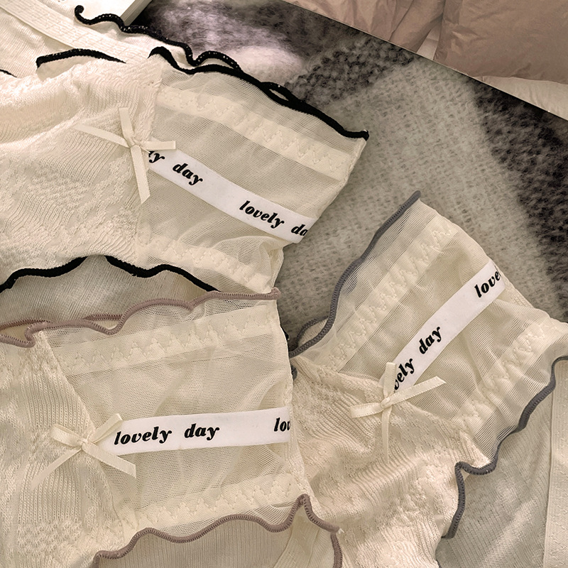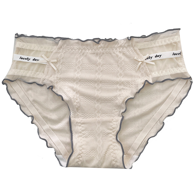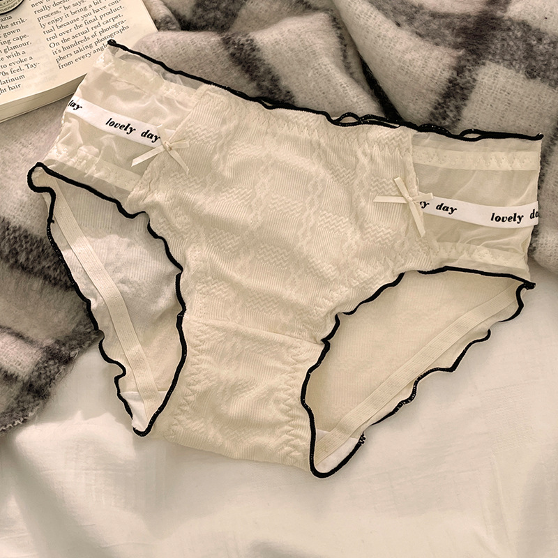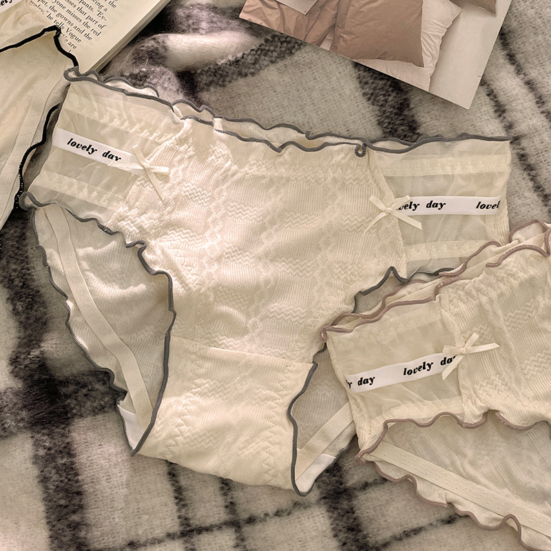 新款甜美泡芙纯棉中腰木耳边女士内裤性感蕾丝纯欲抗菌内裤女