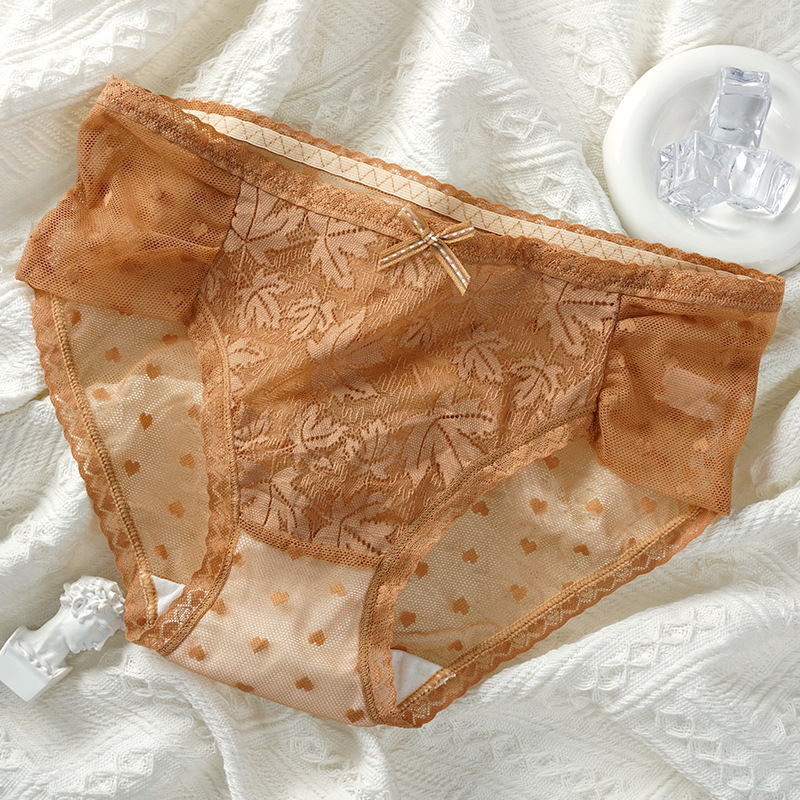 日系无痕枫叶蕾丝性感女士内裤纯欲情趣少女半透明中腰抗菌三角裤