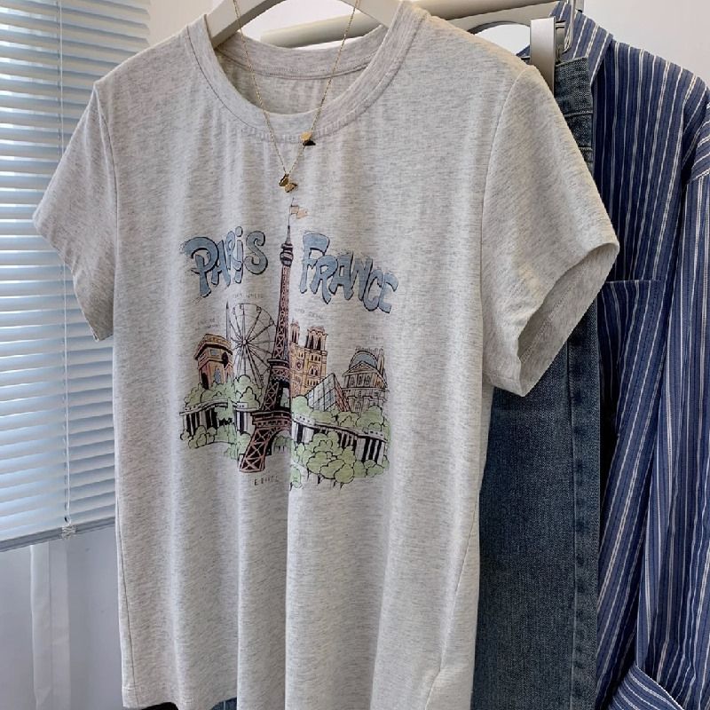 新款趣味卡通可爱印花正肩T恤女装夏季短袖宽松百搭显瘦休闲上衣