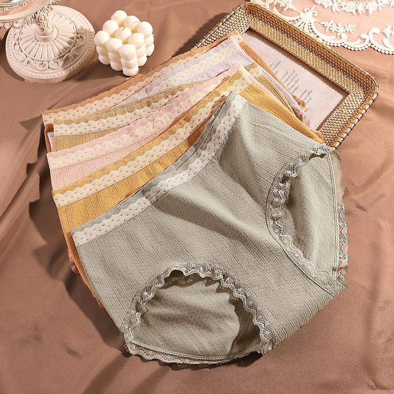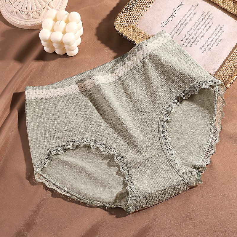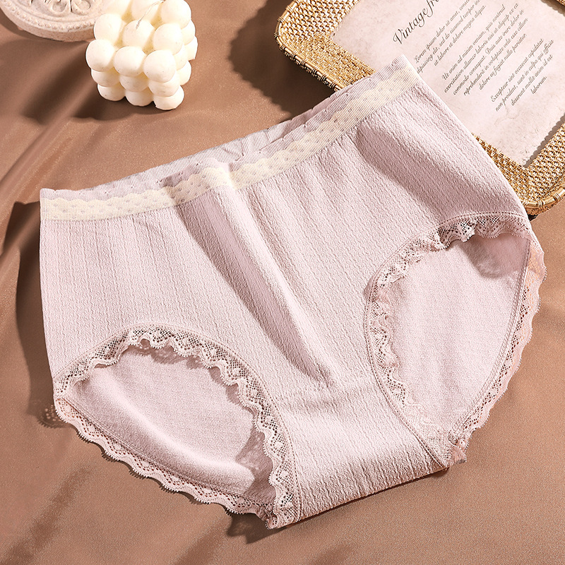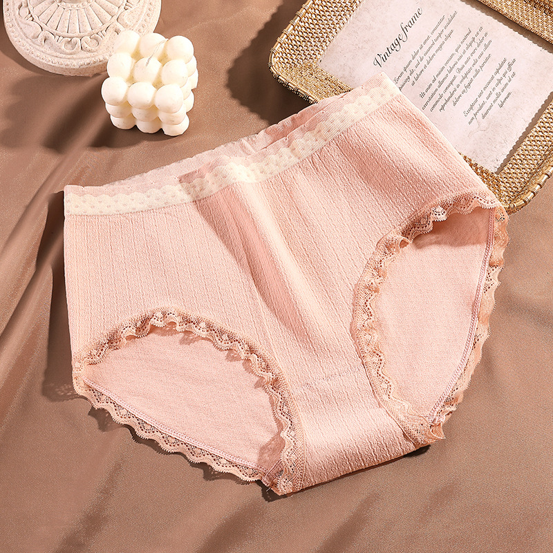新款无缝女士内裤纯棉蕾丝边少女中腰透气纯棉石墨烯抗菌裆内裤女