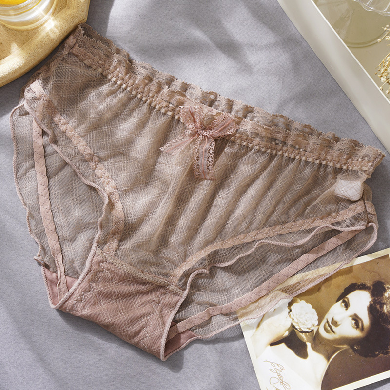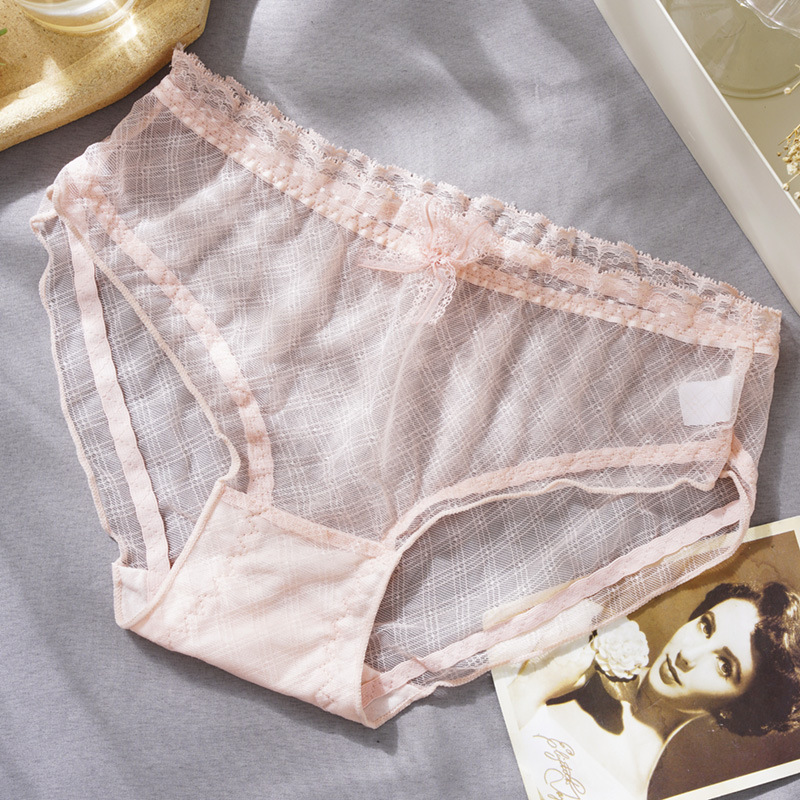 日系无痕性感蕾丝女士内裤中腰性感魅惑内裤女镂空半透明情趣内裤