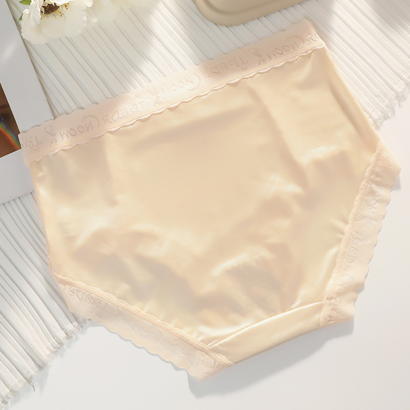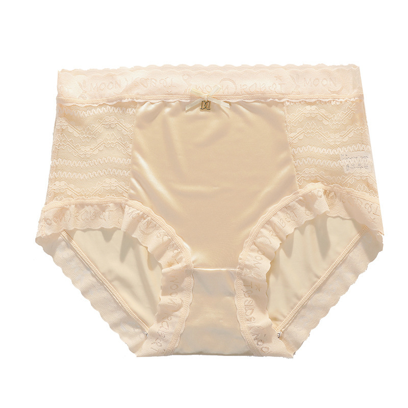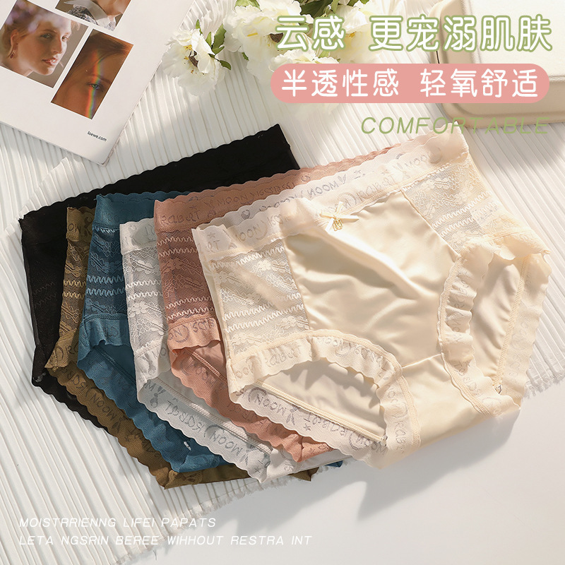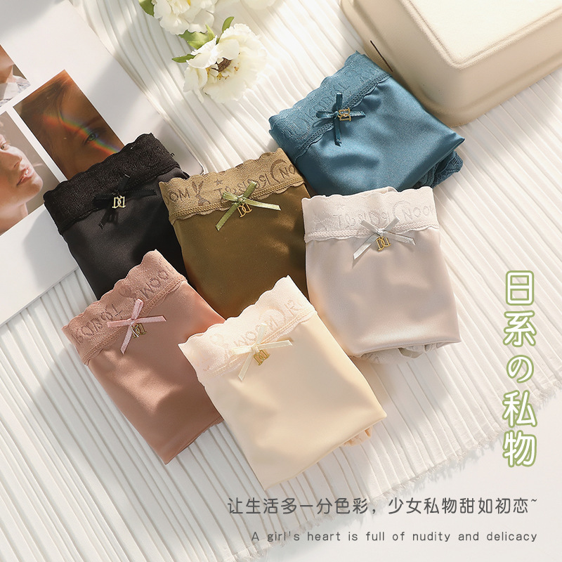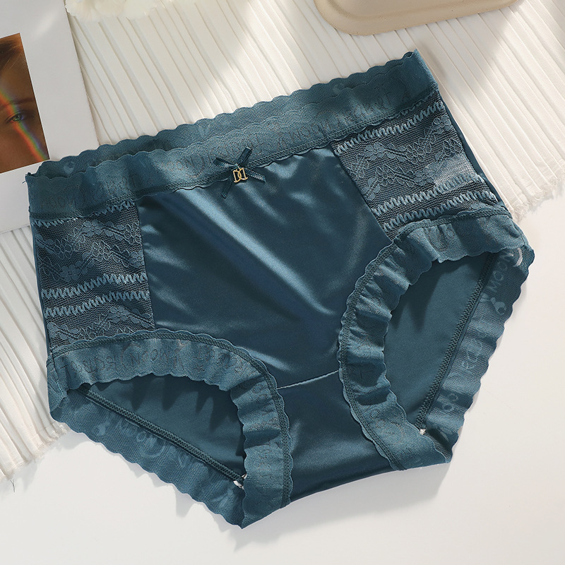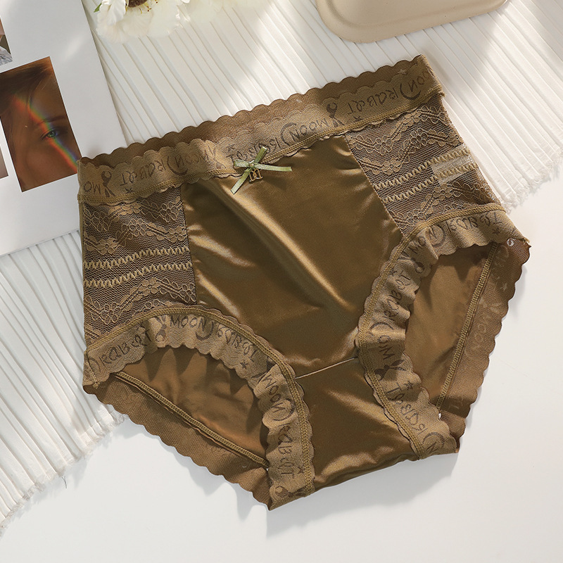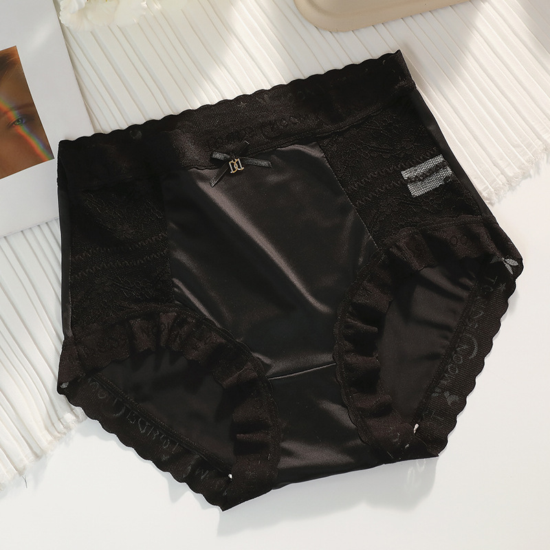 新品法式珠光缎面抗菌女士内裤中高腰舒适包臀性感蕾丝内裤女
