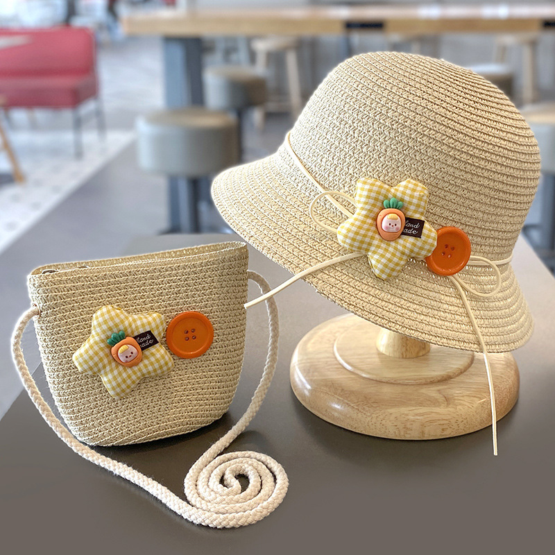 儿童帽子夏季女孩大檐草帽出游户外遮阳防晒女宝宝渔夫帽夏天包女