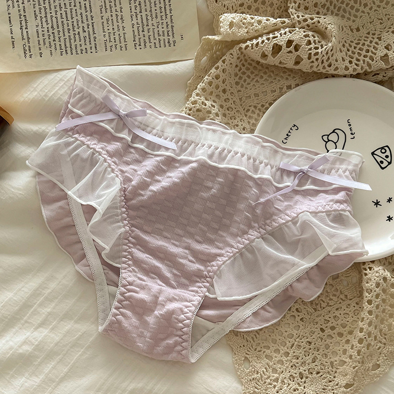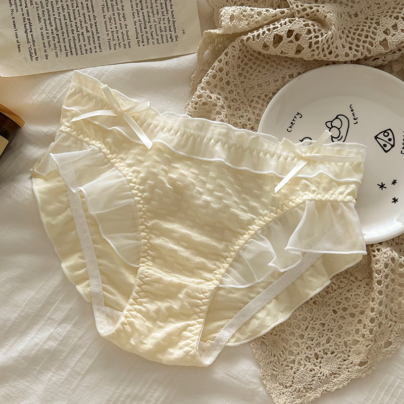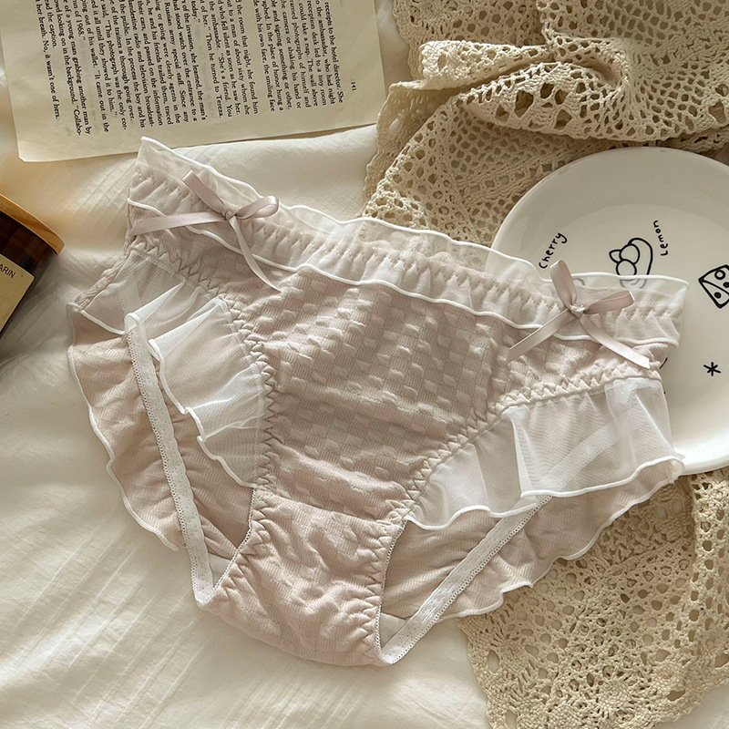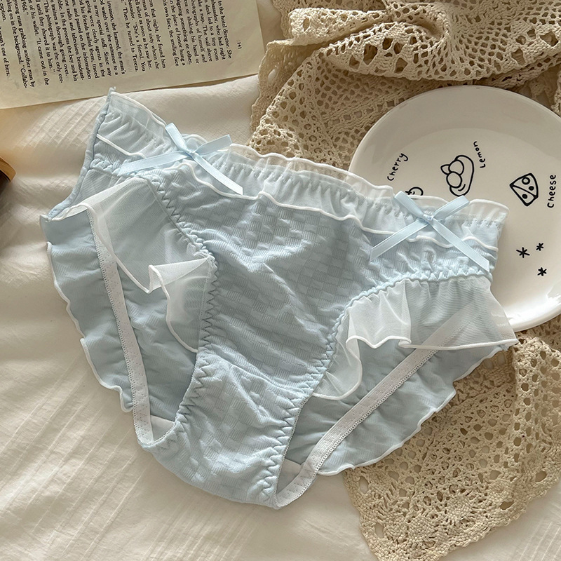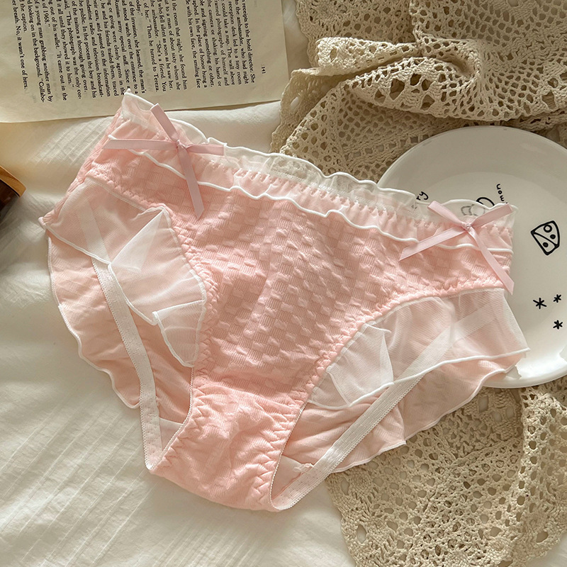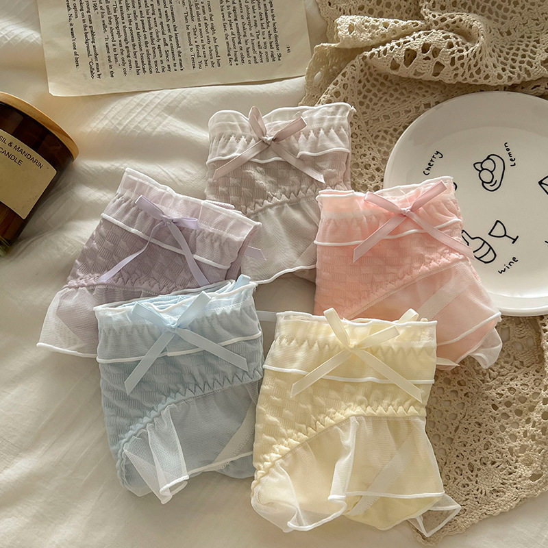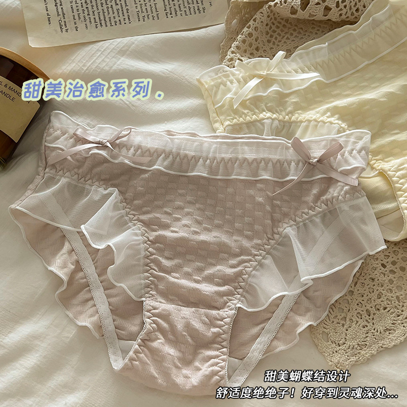 ins清甜奶芙~甜美少女内裤纯欲风蕾丝网纱性感中腰三角裤薄款透气