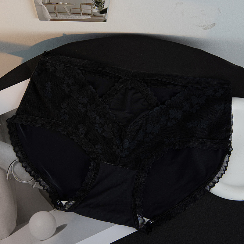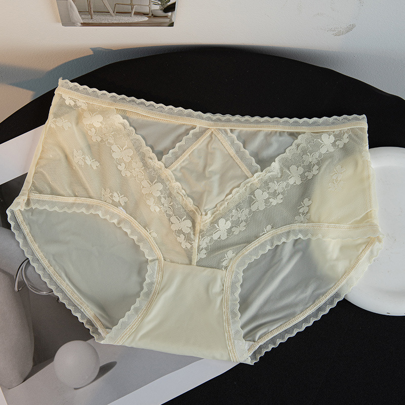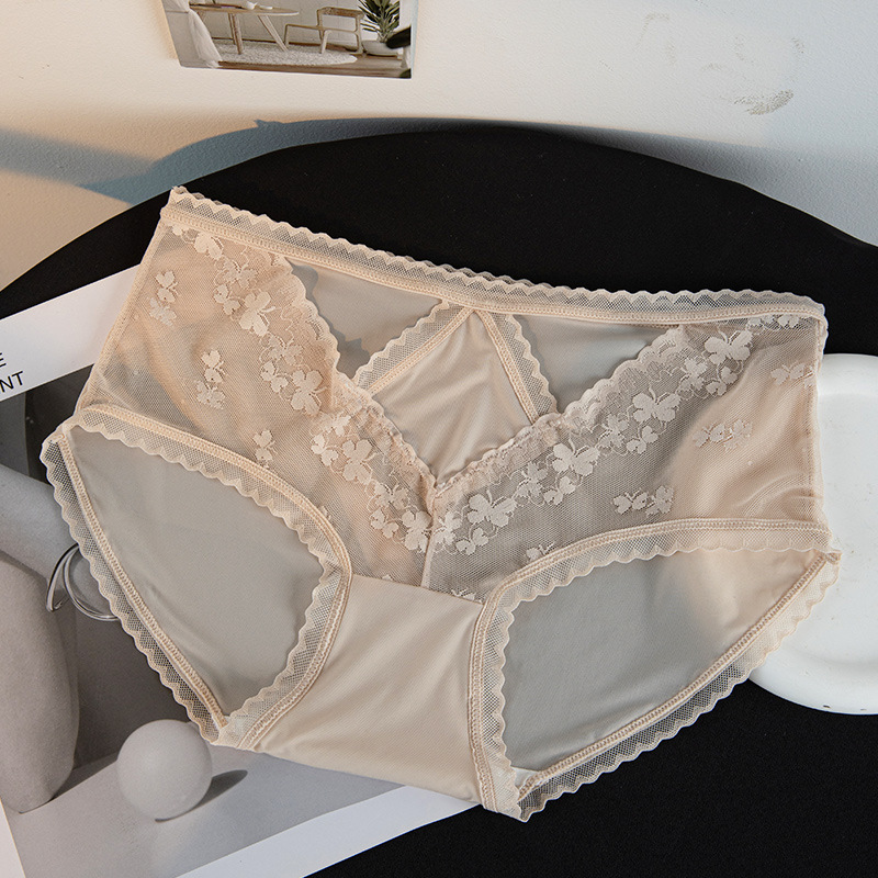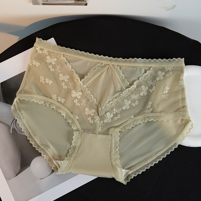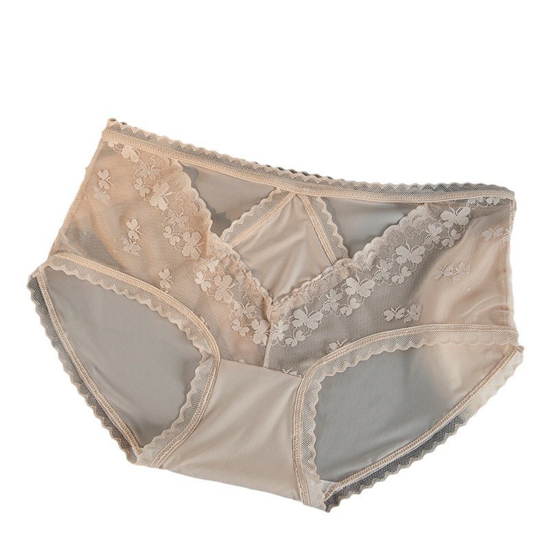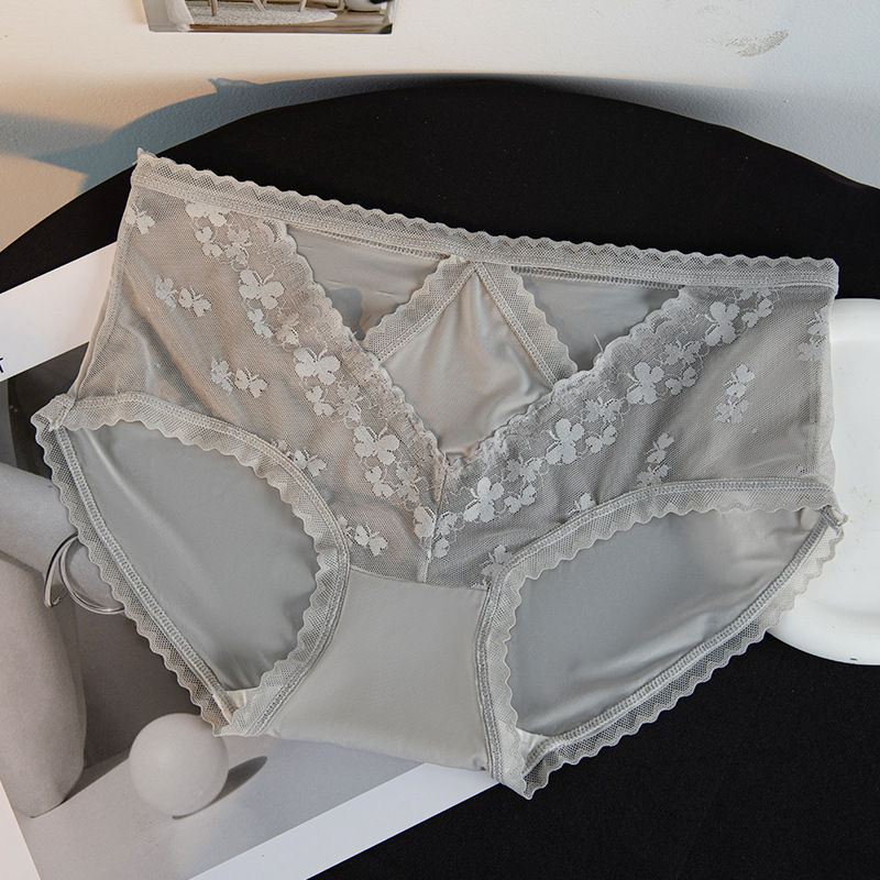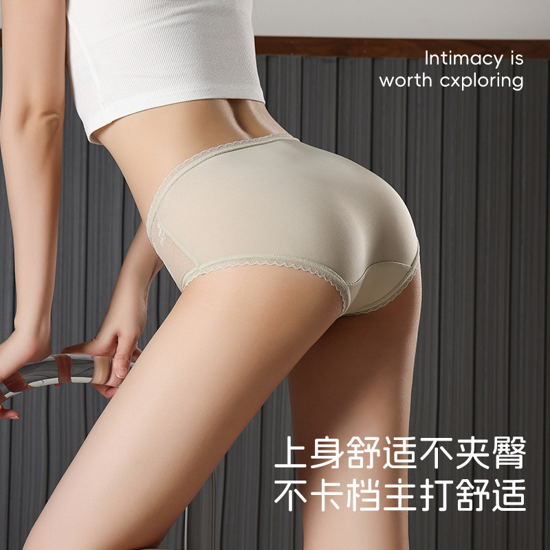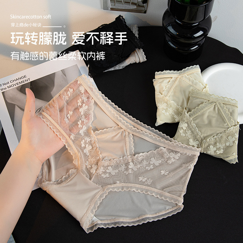 新款法式蕾丝内裤女性感桑蚕丝内裆中腰大包臀女士三角裤