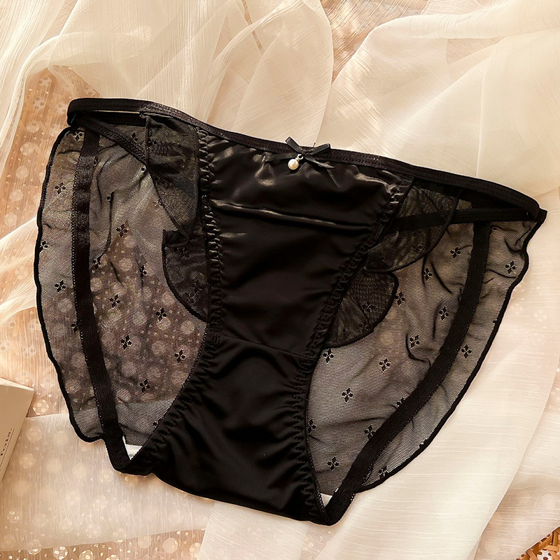 新款简约法式性感诱惑蕾丝内裤少女木耳边透明桑蚕丝内裆女士内裤