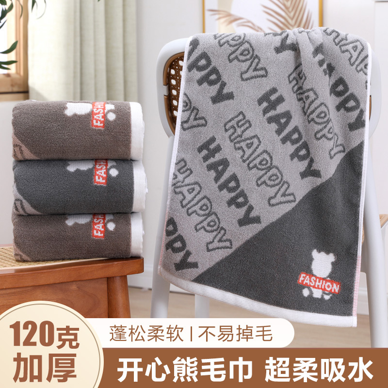 开心熊纯棉a类毛巾双面家用情侣洗脸加厚吸水面巾不掉毛洗澡用