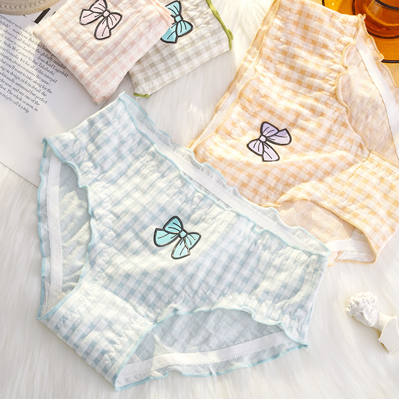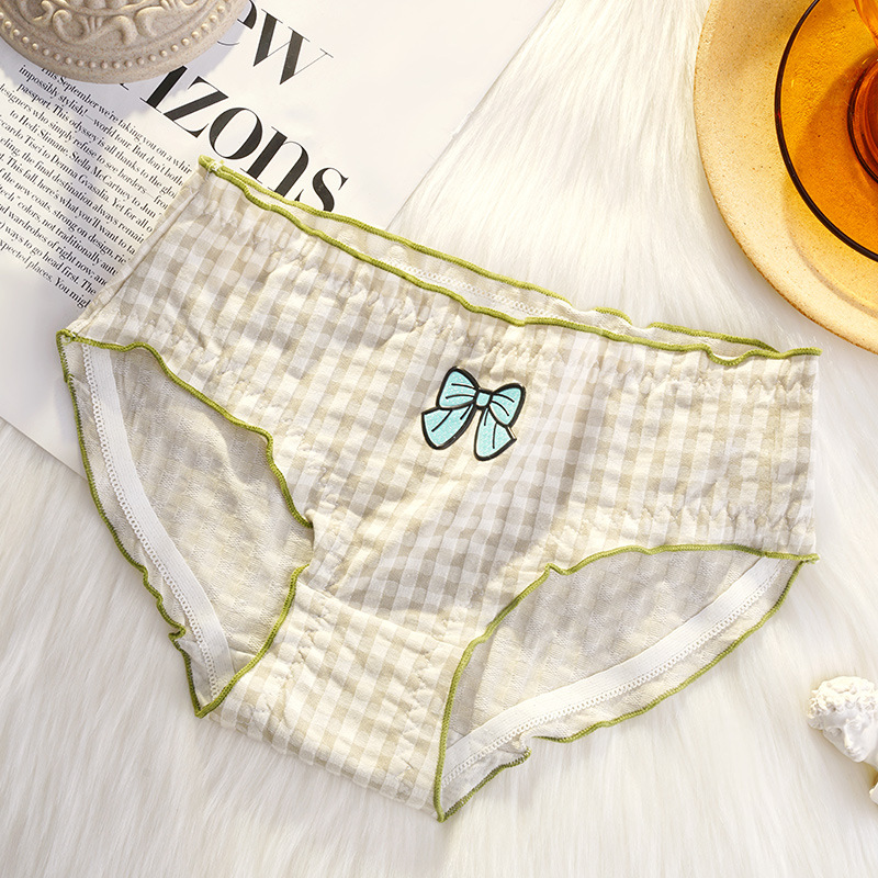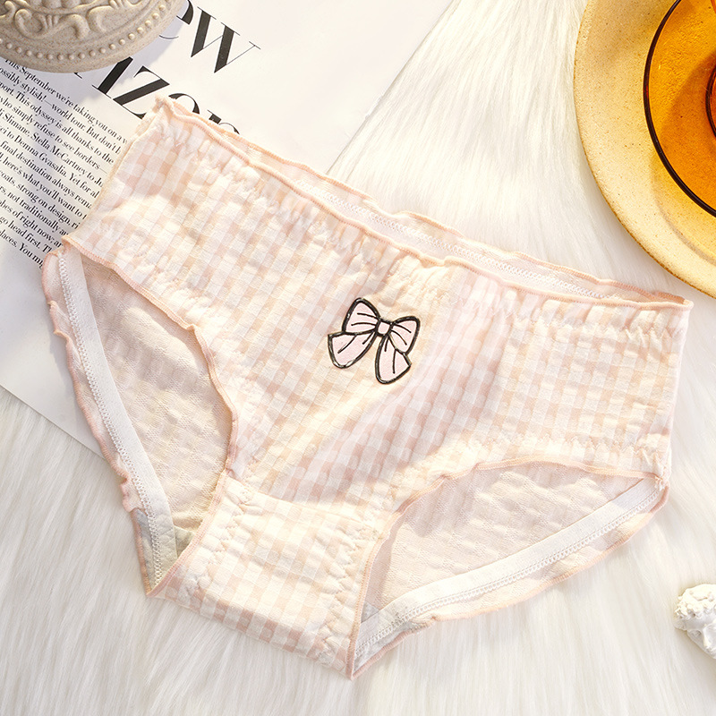 新款无痕中腰泡泡内裤女纯棉抗菌日系可爱学生木耳边三角女士内裤