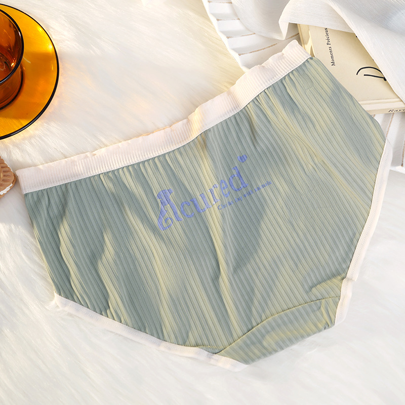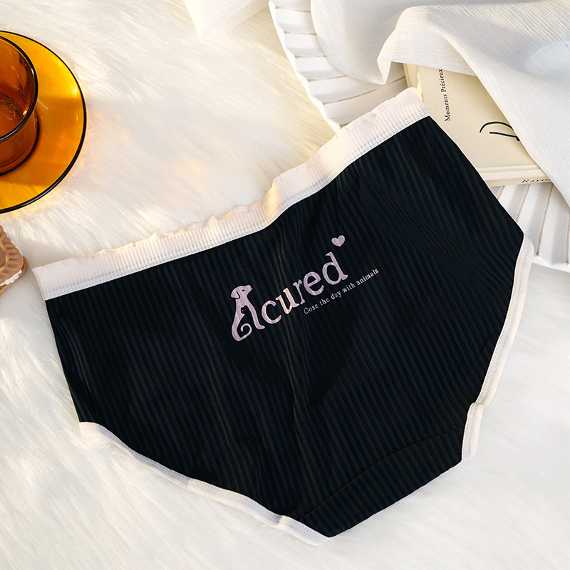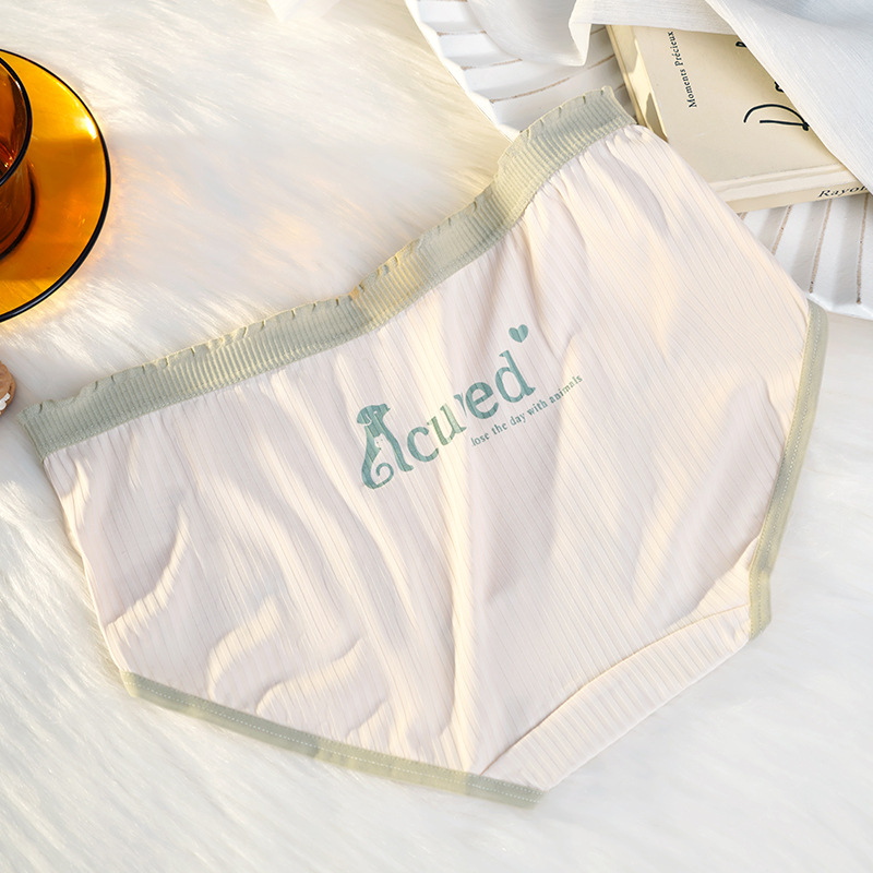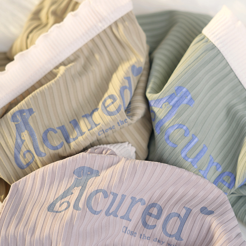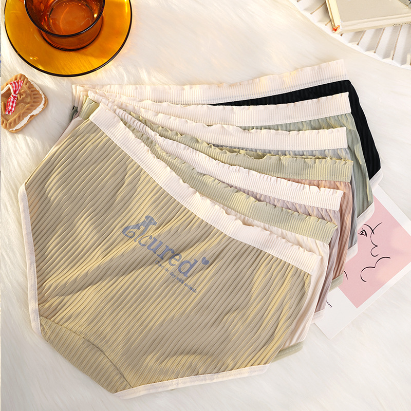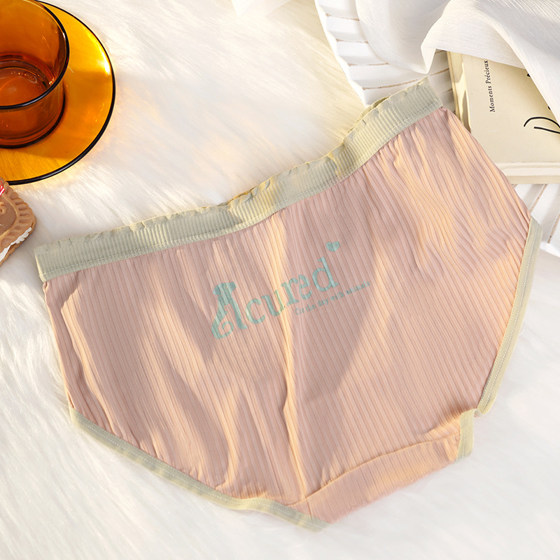 日系纯欲学生少女冰丝中腰舒适螺纹速干马卡龙色透气包臀女士内裤