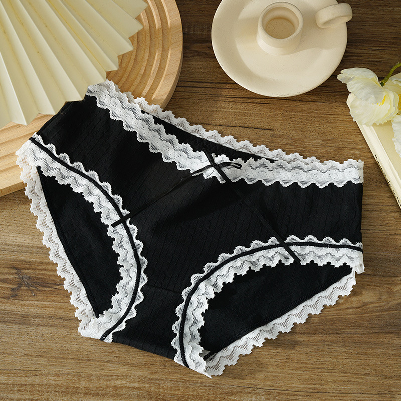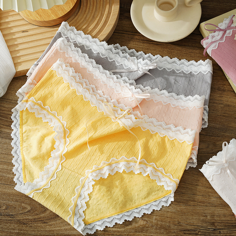 爆款无痕纯棉抗菌石墨烯中腰女士内裤舒适提花全棉蕾丝内裤女