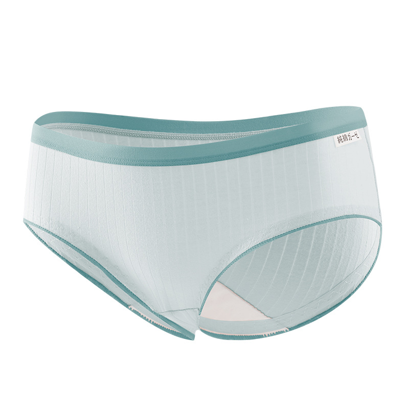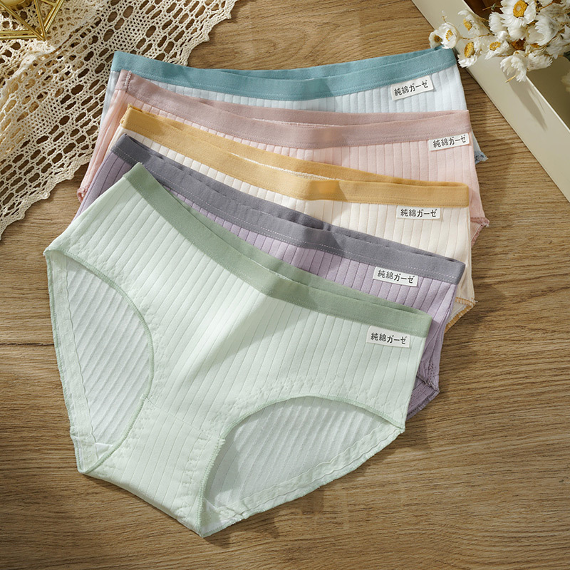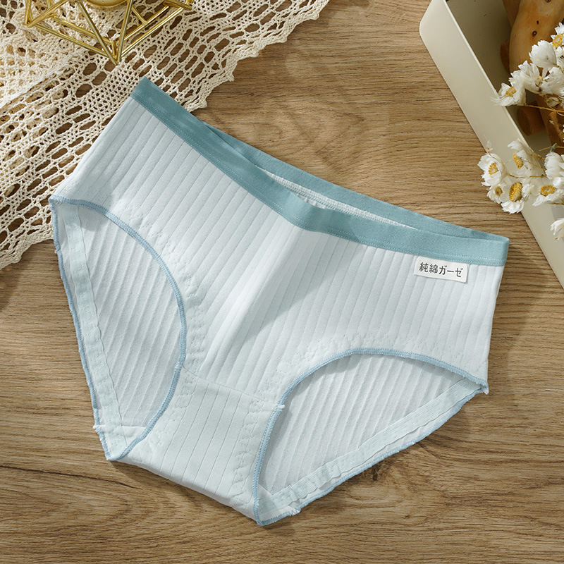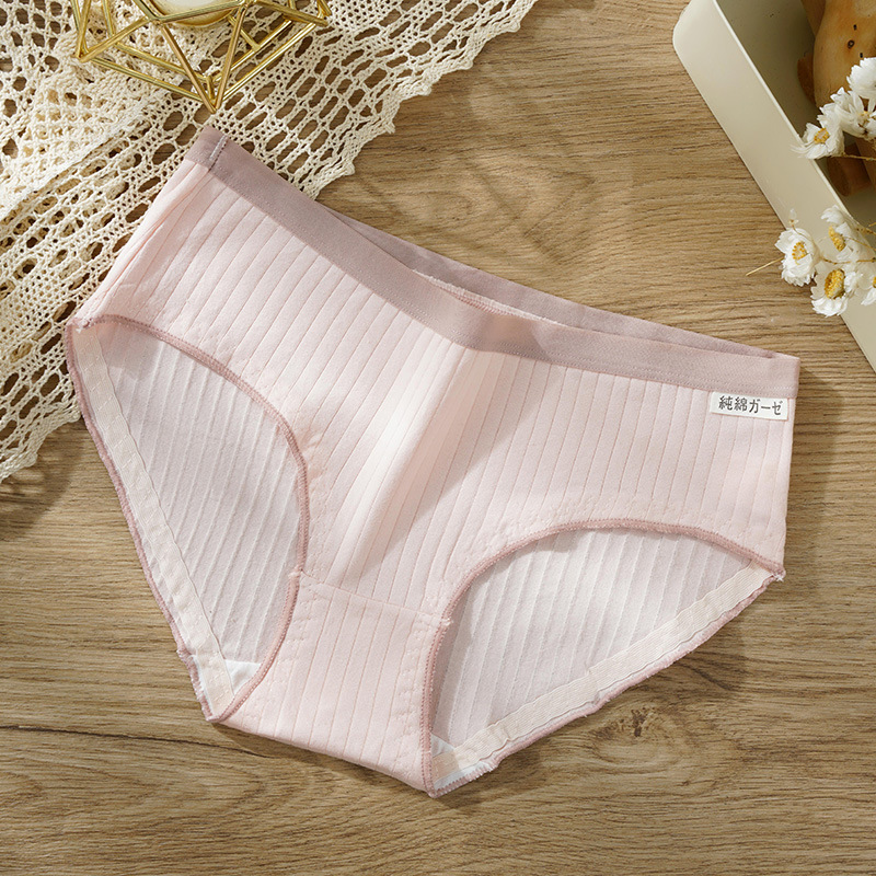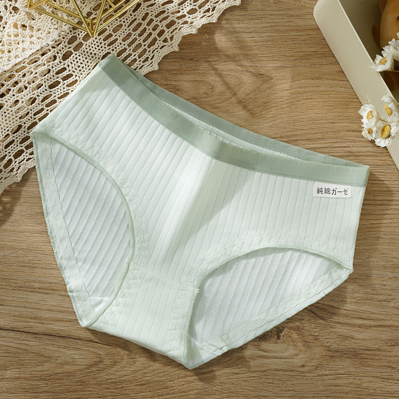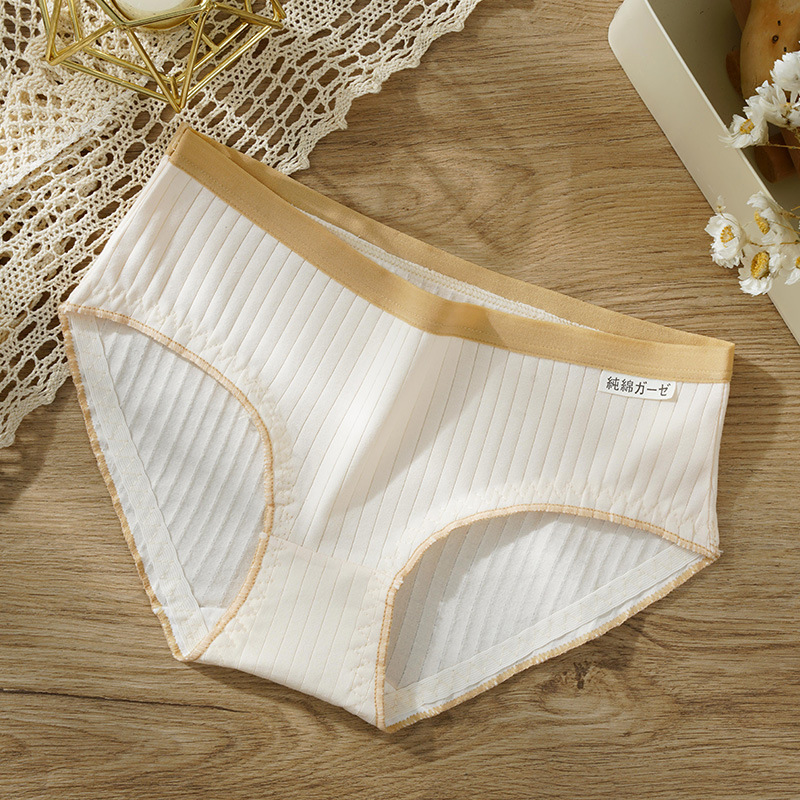 新款日系纯棉中腰女士内裤无痕舒适抗菌木耳边学生少女条纹内裤女