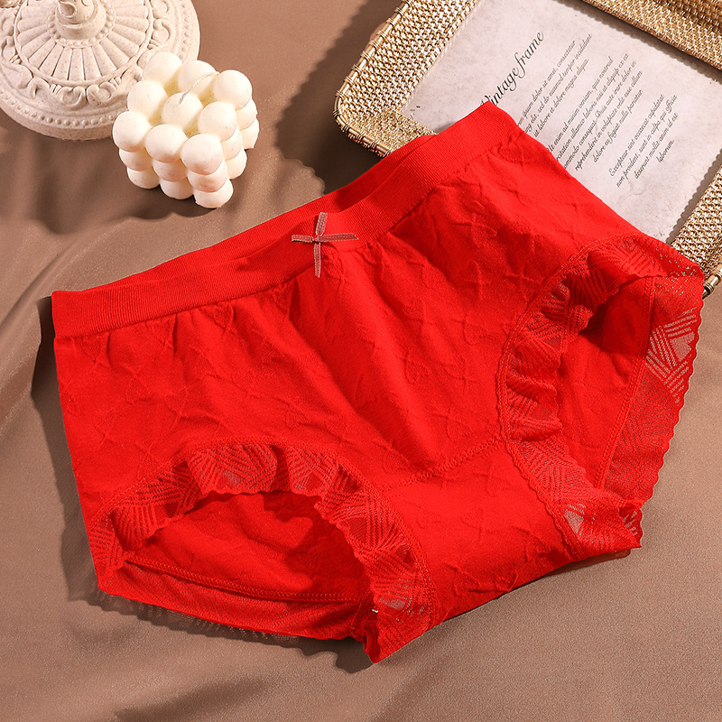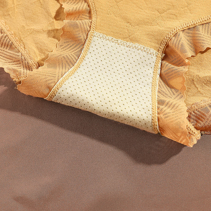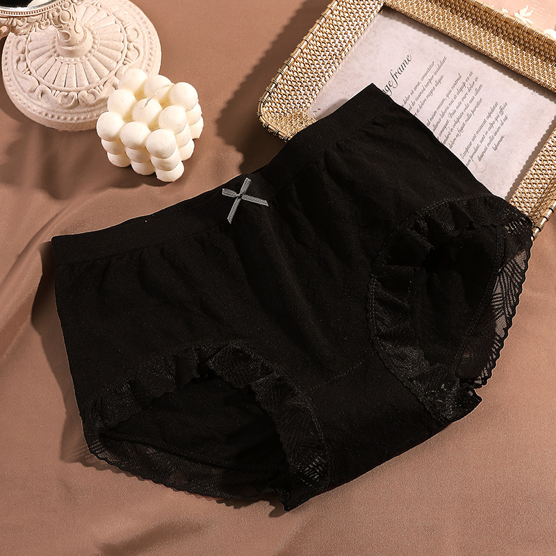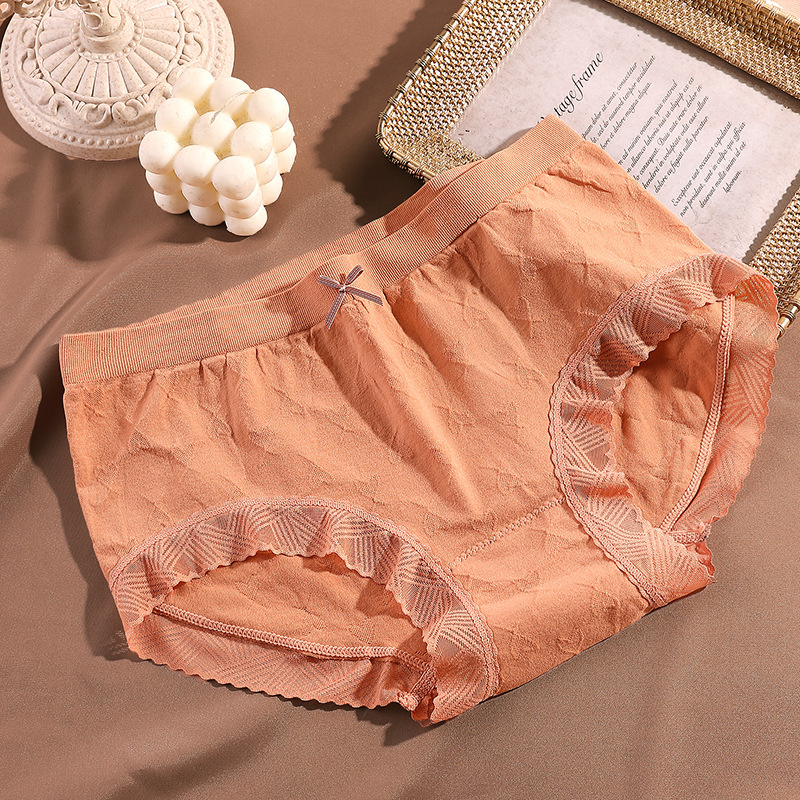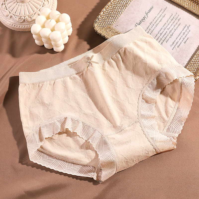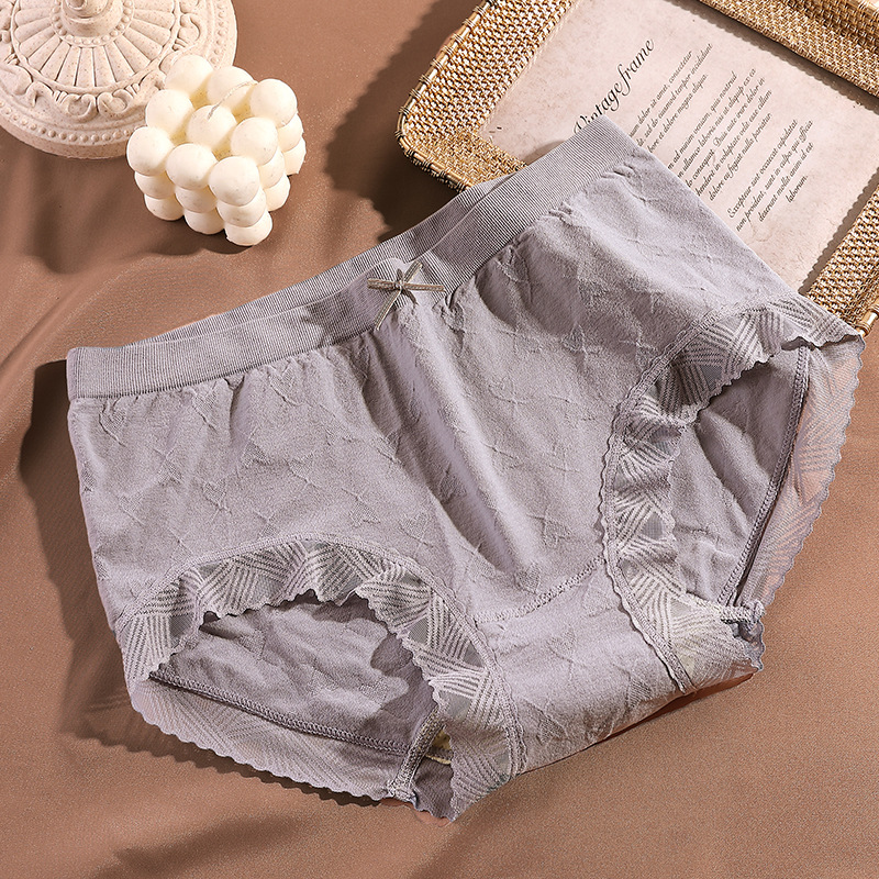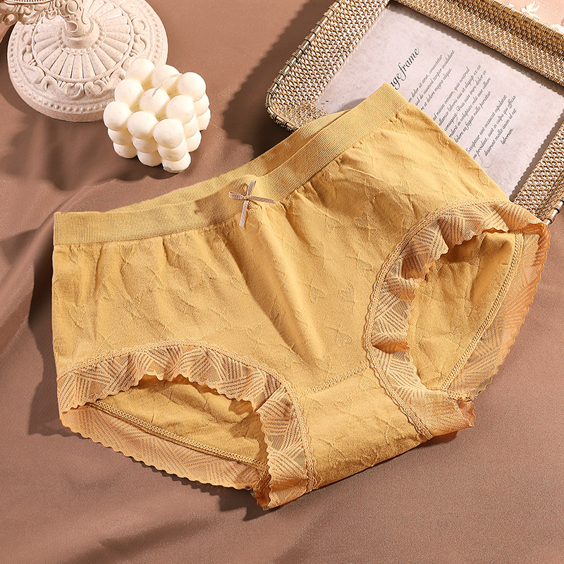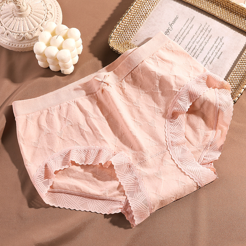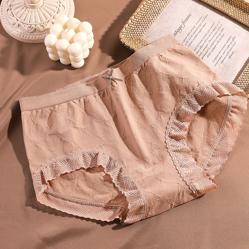 日系无缝中腰内裤女蕾丝少女三角裤提臀舒适透气艾草抗菌女士内裤