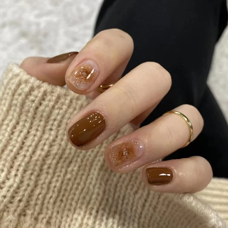 [金箔晕染咖啡棕]穿戴甲穿戴式美甲甲片可拆卸假指甲