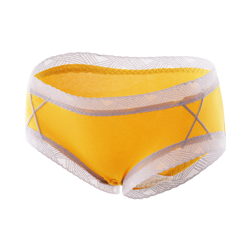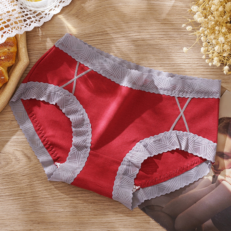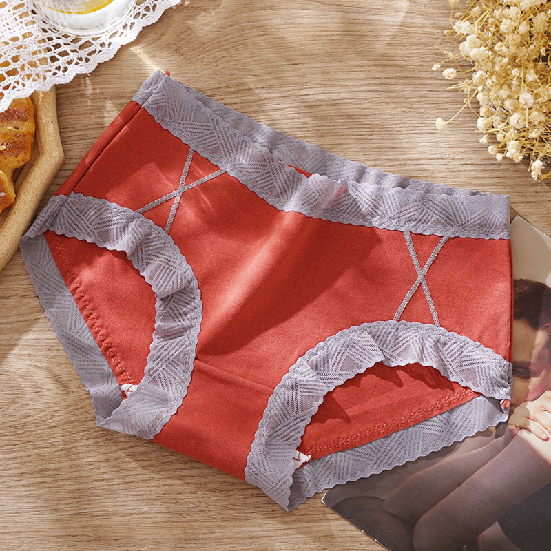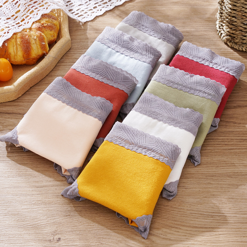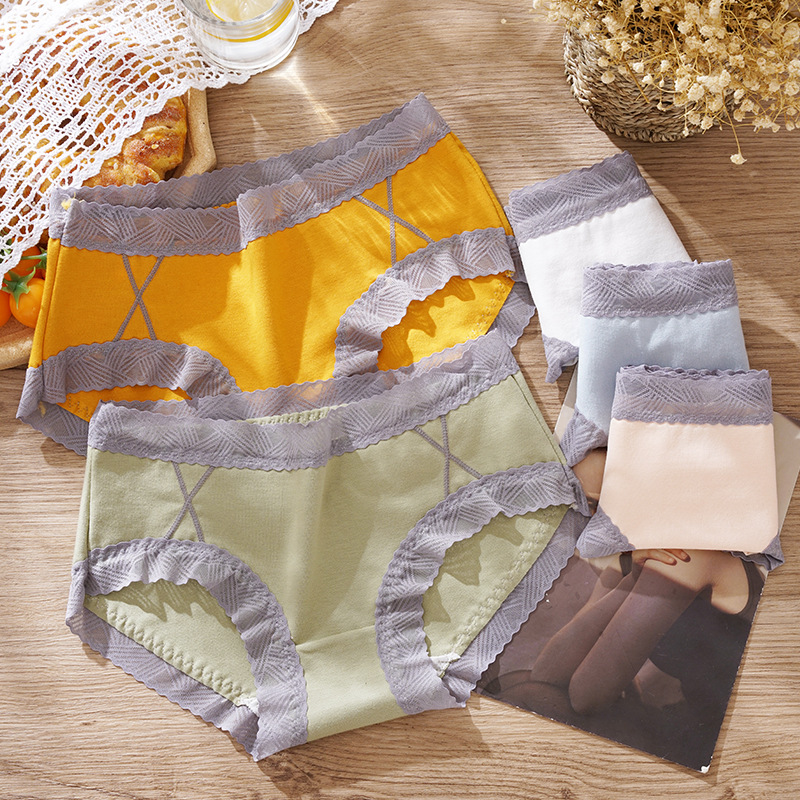 日系双拼色无痕纯棉抗菌时尚舒适内裤女性感蕾丝撞色中腰女士内裤