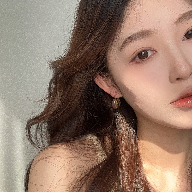 气质复古美拉德风滴釉素圈耳扣气质小众高级感耳环简约百搭耳饰女